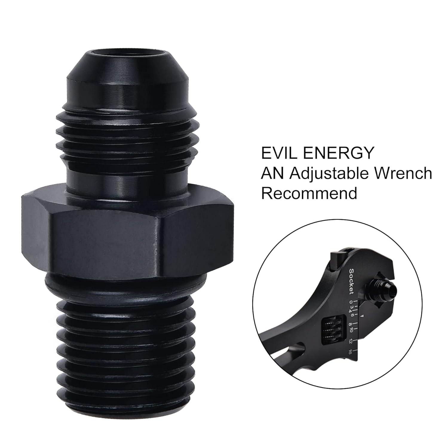 The EVIL ENERGY 6AN Male Flare to M18 x 1.5mm Male Metric Fitting Adapter (sold as a 2-piece set) is a specialized adapter designed for use in fluid systems, particularly in automotive and mechanical applications. This fitting allows you to connect 6AN male flare fittings to M18 x 1.5mm male metric threads, providing versatility in systems that utilize both AN and metric threading. Here’s a detailed review of this product: