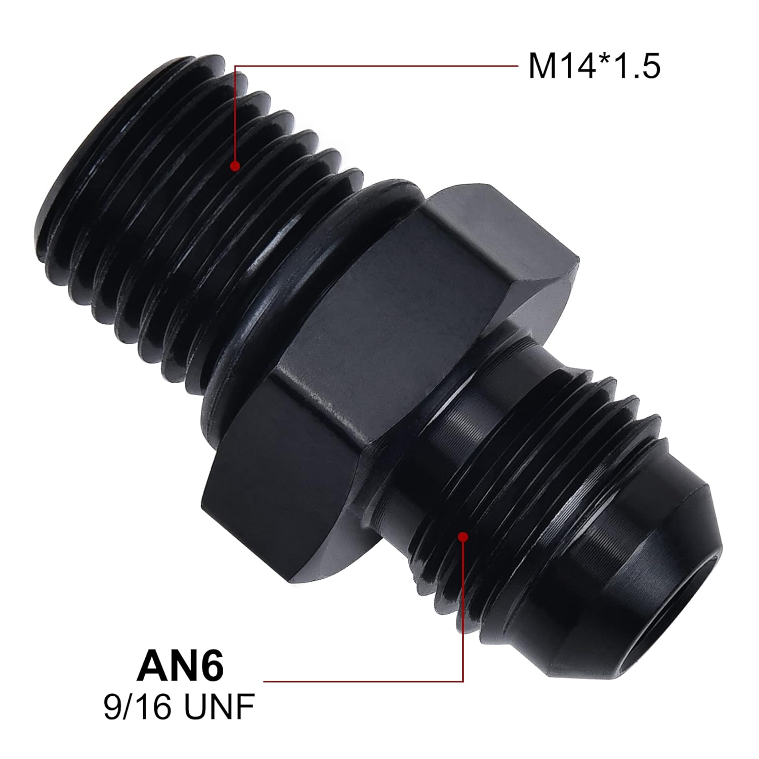- Tamanho: O adaptador possui um tamanho de rosca de 6AN, que corresponde a 9/16-18 UNF, enquanto o lado métrico apresenta uma rosca M14 x 1.5mm. Essa compatibilidade torna o produto versátil para diversas aplicações automotivas.