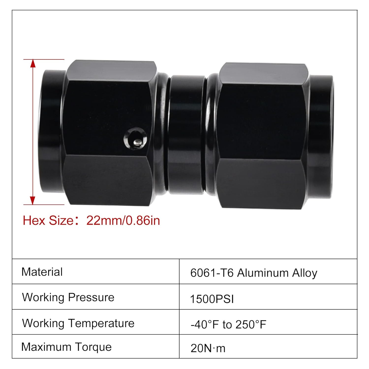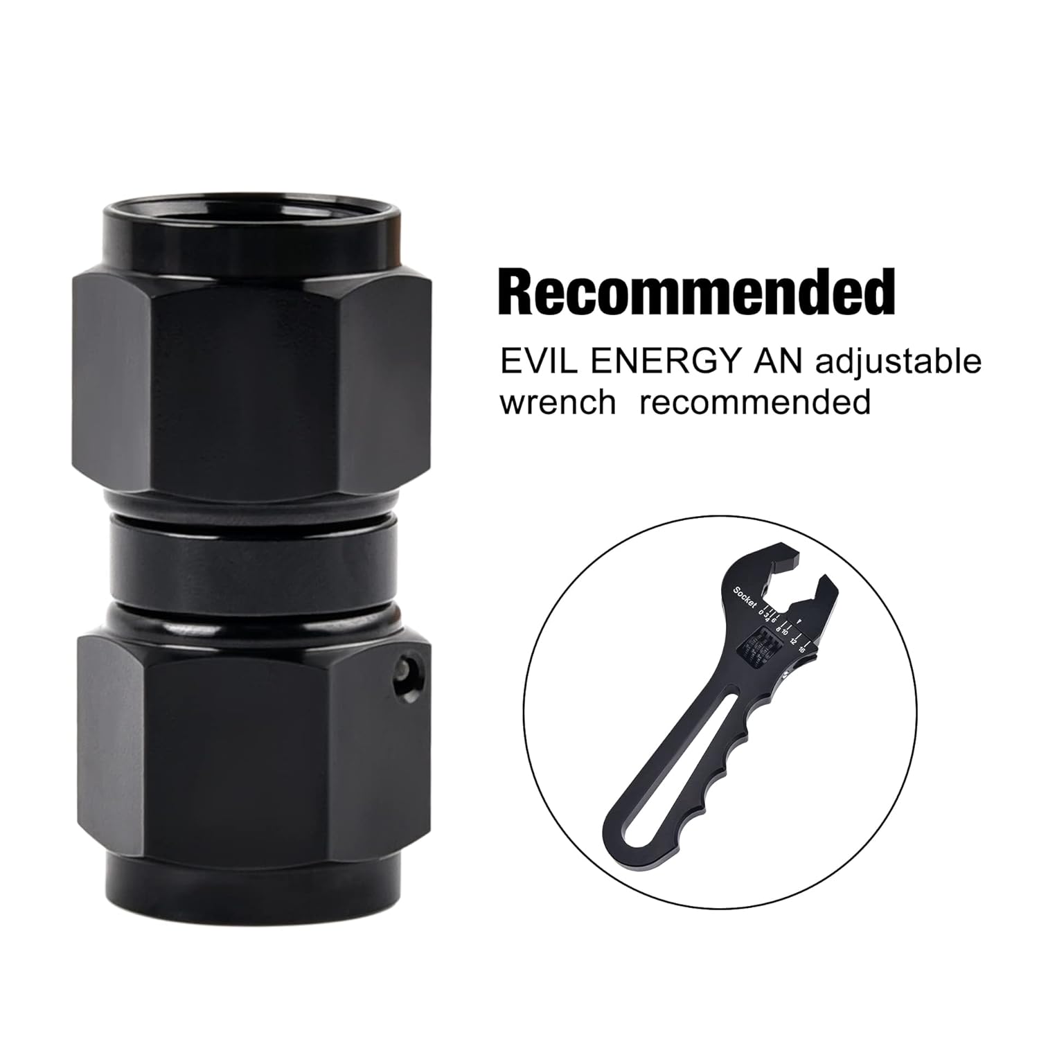 Descrição do Produto: EVIL ENERGY 8AN Female to 8AN Female Straight Swivel Coupler Union Fitting Adapter Aluminum Black
