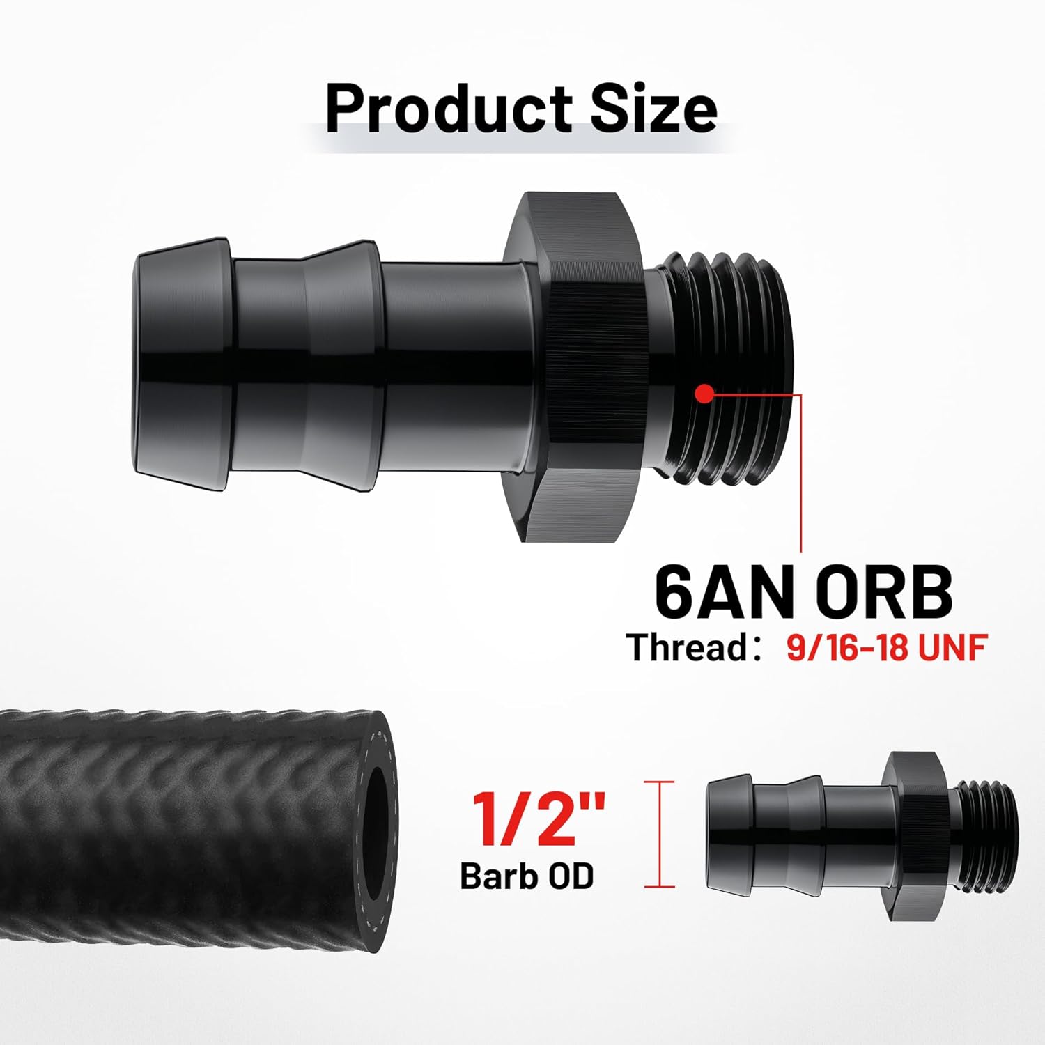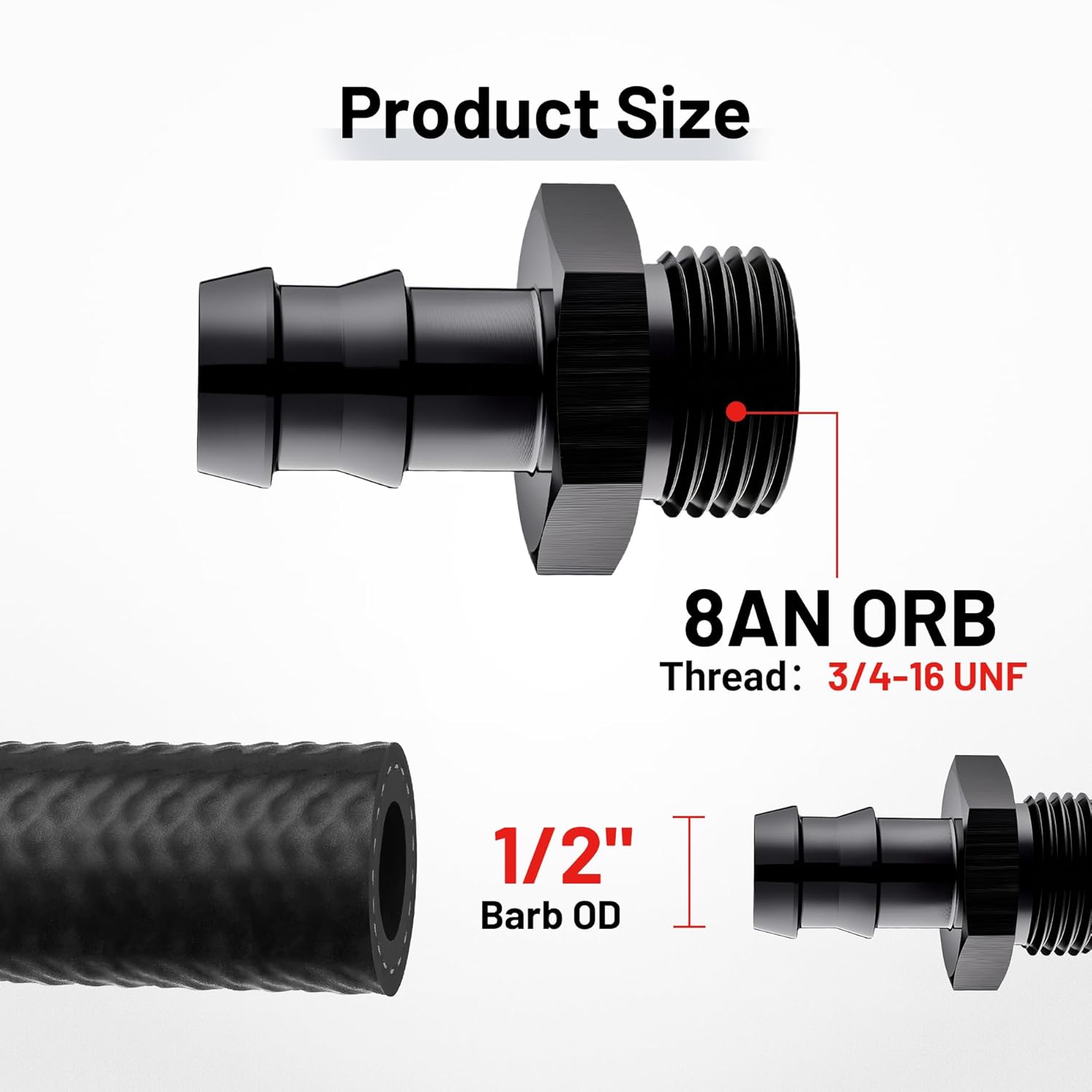 – Tamanho: 8AN (3/4-16UNF) masculino ORB para barb de 1/2″.