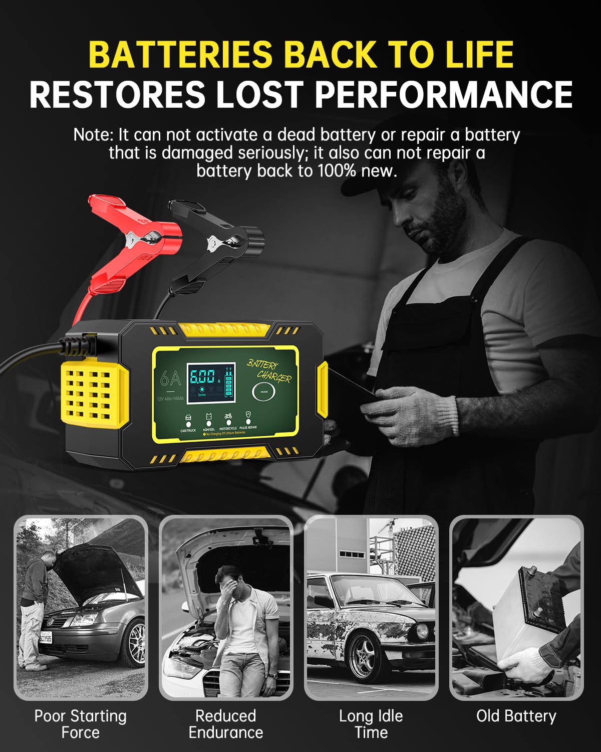 This battery charger is easy to use and works well. I ordered it because my car battery had died twice in the last few months, and taking it to a place to recharge is such a hassle. The charger works really well; it is incredibly simple to use, and for the price, I believe it is something every household should have.