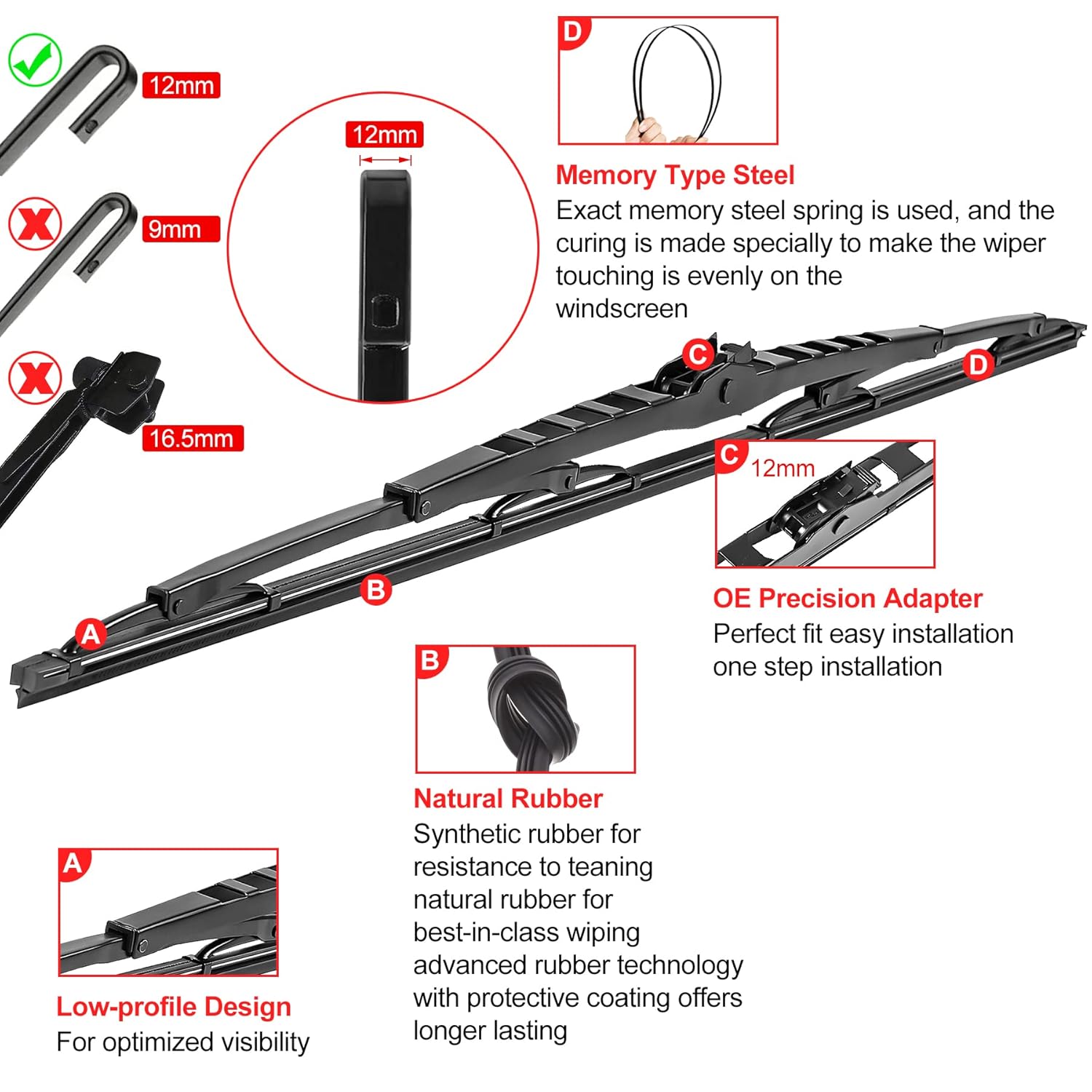 Alta Qualidade em Aço: Utilizamos aço de alta liga de carbono médio, que oferece excelente resistência e durabilidade. Mesmo em chuvas intensas, a palheta se movimenta sem sofrer deformações, garantindo uma limpeza eficaz. O quadro é feito de PBT 100% com 30% de PB, firme e resistente, enquanto a lâmina é composta de borracha de silicone ABS, proporcionando um desempenho suave e duradouro.