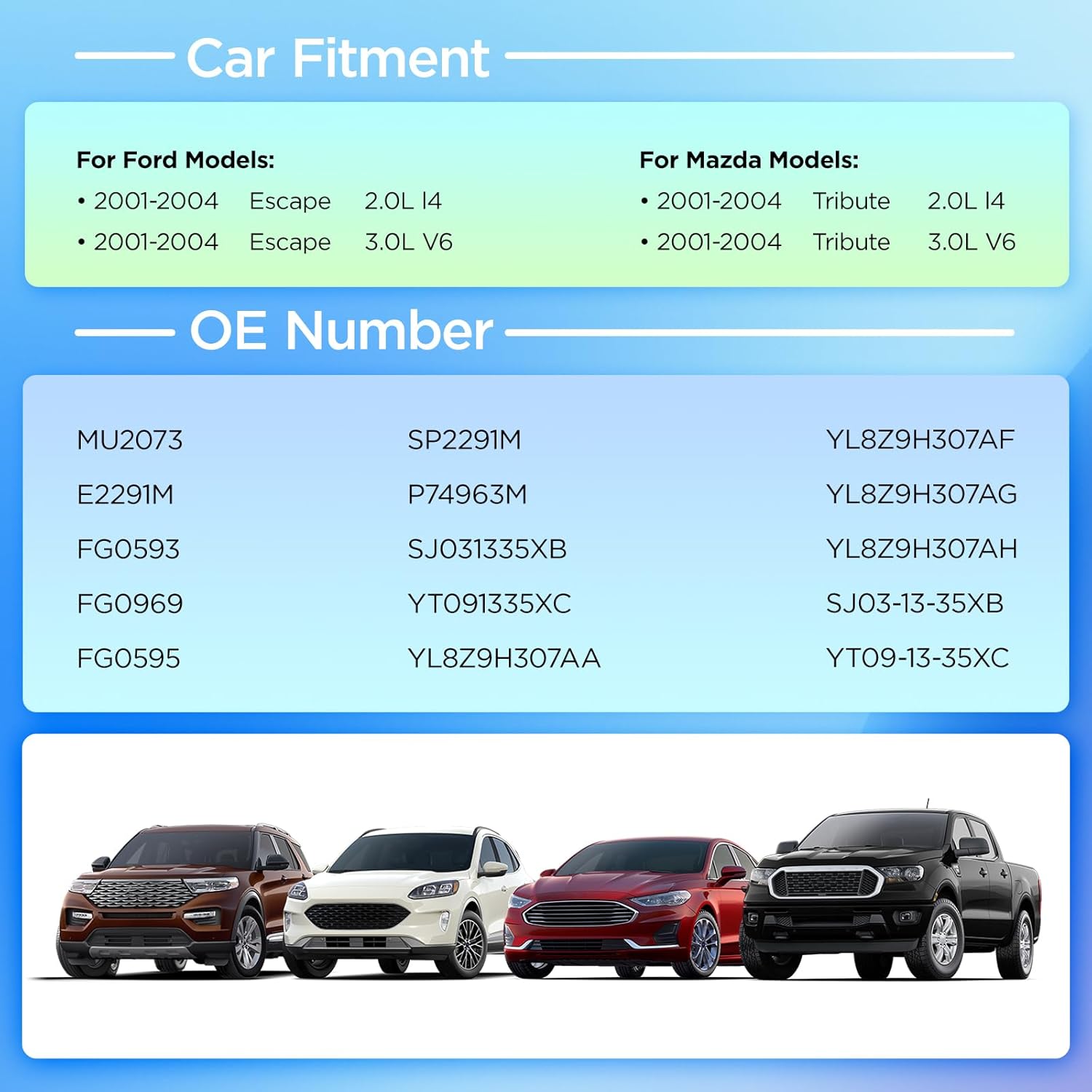 - [ Compatibilidade de Veículos ] – Compatível com Ford Escape 2001-2004 L4 2.0L, para Escape 2001-2004 V6 3.0L; Compatível com Mazda Tribute 2001-2004 L4 2.0L, para Tribute 2001-2004 V6 3.0L. Verifique a compatibilidade para garantir que esta é a peça correta para seu veículo.