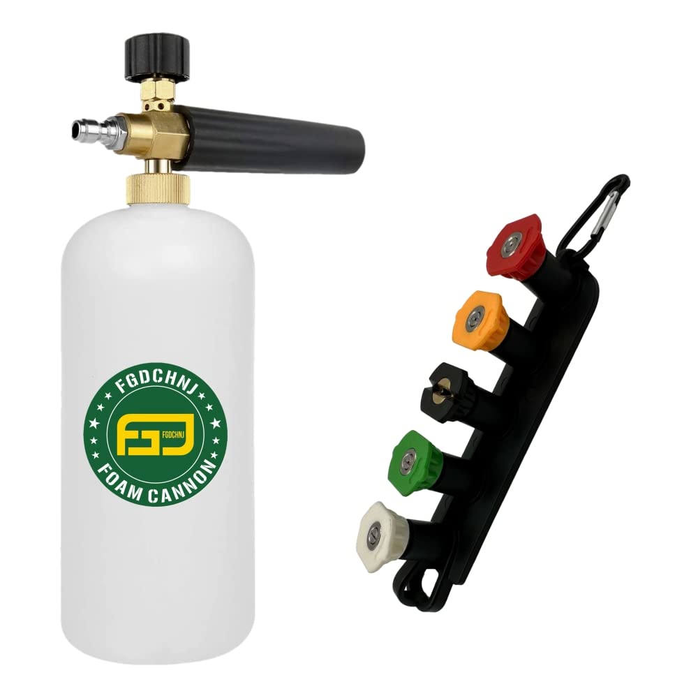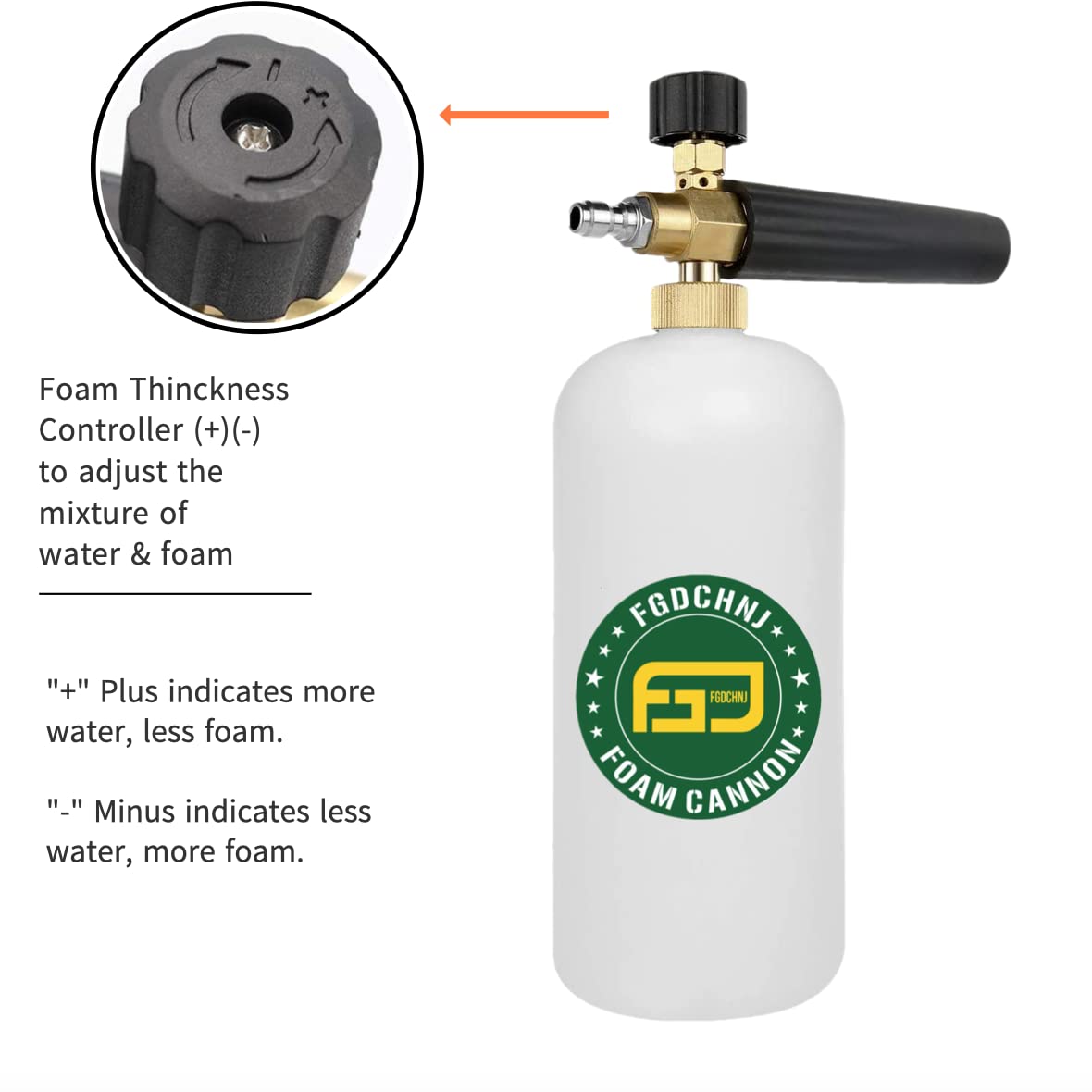 A FGDCHNJ Pressure Washer Foam Cannon é a solução definitiva para quem busca eficiência e praticidade na lavagem de veículos e superfícies. Com um conector rápido de 1/4”, este acessório é compatível com todas as pistolas e varas de lavadoras de alta pressão que possuem esse tipo de conexão. Com uma pressão máxima de 3200 PSI e uma vazão de até 5.3 GPM, a espuma gerada é capaz de remover sujeira e manchas com facilidade, tornando o processo de limpeza muito mais eficaz. Além disso, a temperatura máxima suportada é de 60℃ (140℉), garantindo que você possa utilizar água quente para uma limpeza ainda mais profunda.