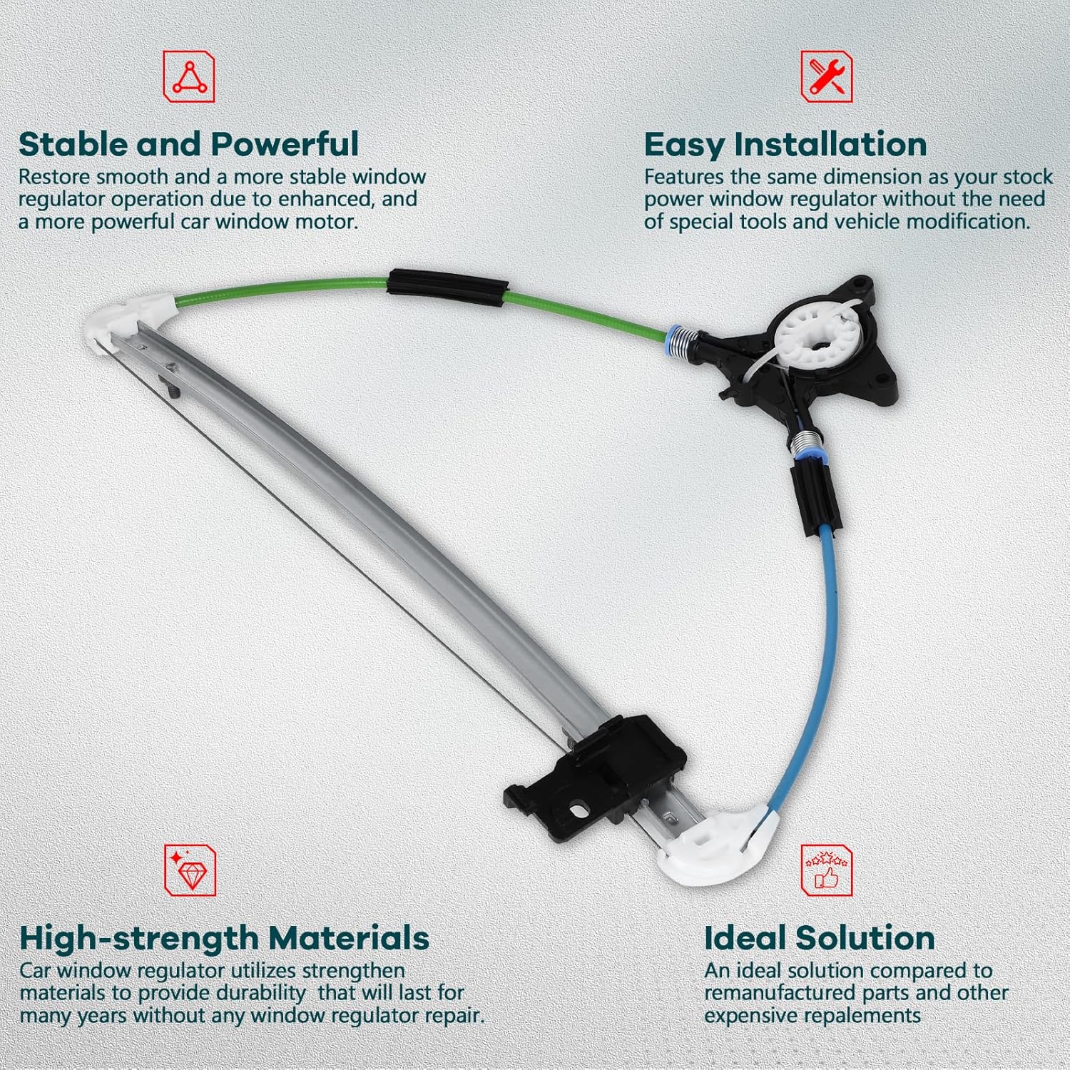 - DURABLE BRACKET: O suporte do regulador de janela é feito de materiais duráveis, que podem levantar e abaixar a janela de forma poderosa e operar suavemente sem tremer.