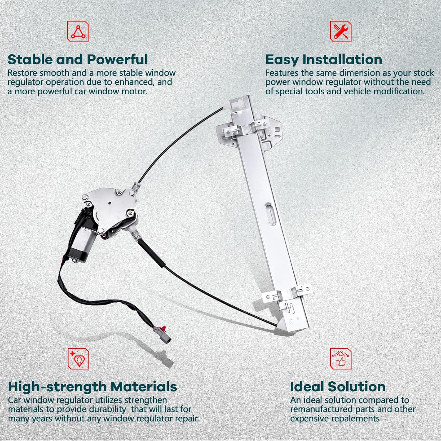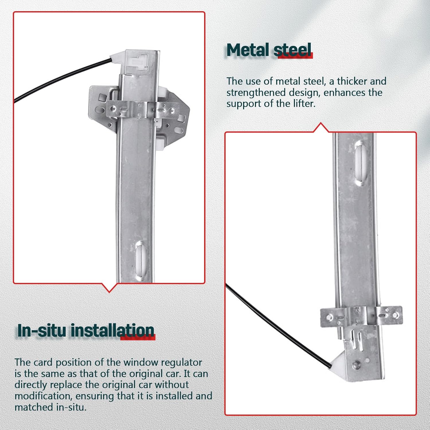 Os componentes do regulador são reforçados, com o motor da janela dianteira esquerda sendo construído em fio de aço espesso e chapa de aço, o que proporciona uma capacidade de carga superior. Essa robustez garante que o regulador funcione de maneira suave e confiável, mesmo sob condições adversas.