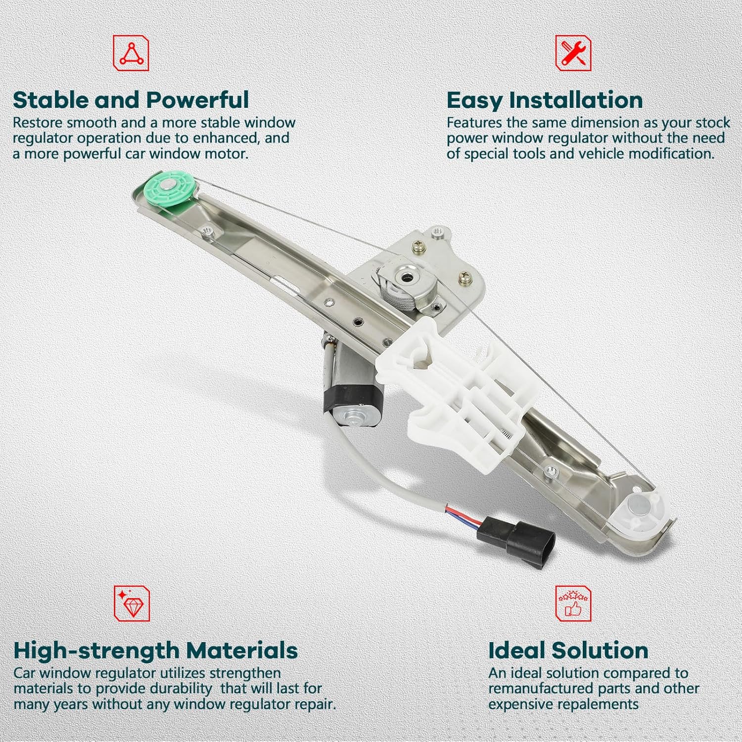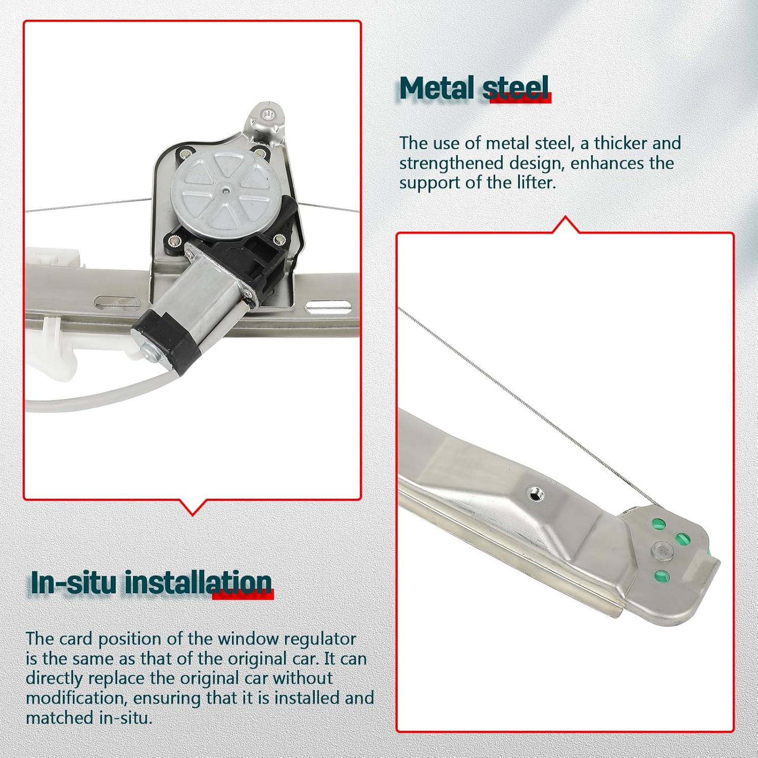 • REINFORCED COMPONENTS: O motor da janela do lado do passageiro traseiro é construído com fios de aço espessos e placas de aço, proporcionando uma capacidade de carga superior. Sua estrutura robusta garante um funcionamento suave e duradouro.