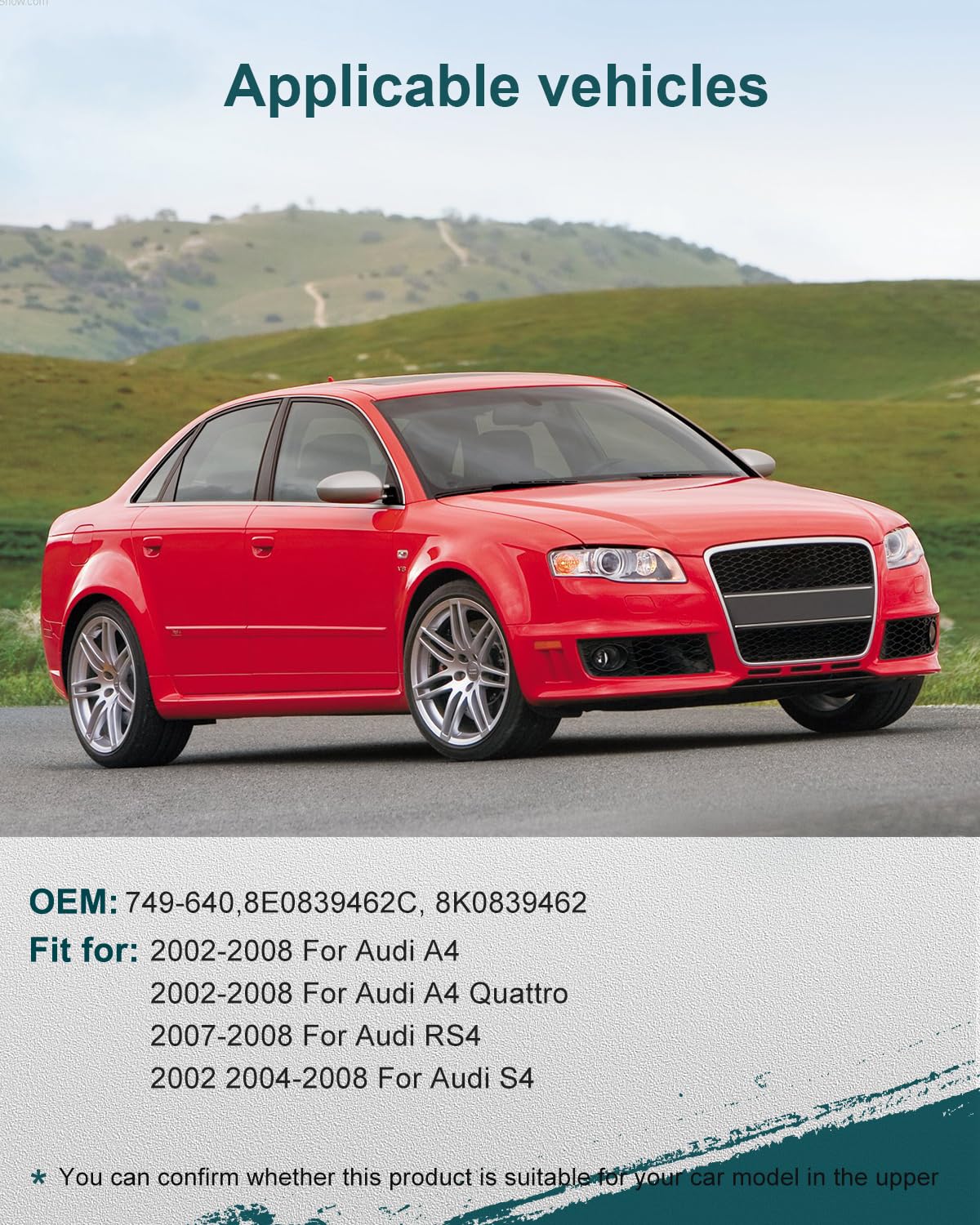 • Compatibilidade: Para modelos de 2003-2008 para A4, 2007-2008 para RS4, 2004-2008 para S4. Confirme se o item se encaixa no modelo do seu veículo antes da compra.