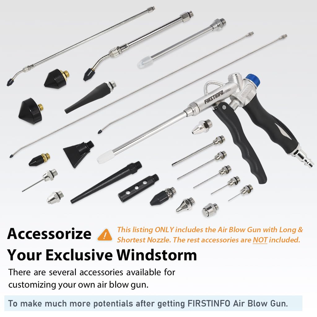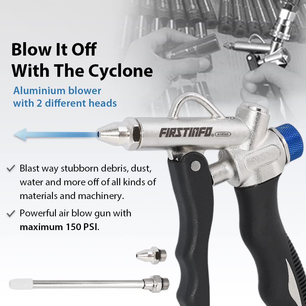 Descrição do Produto: FIRSTINFO A18565US Pistola de Ar de Dupla Ação com Fluxo de Ar Ajustável e Bico Estendido