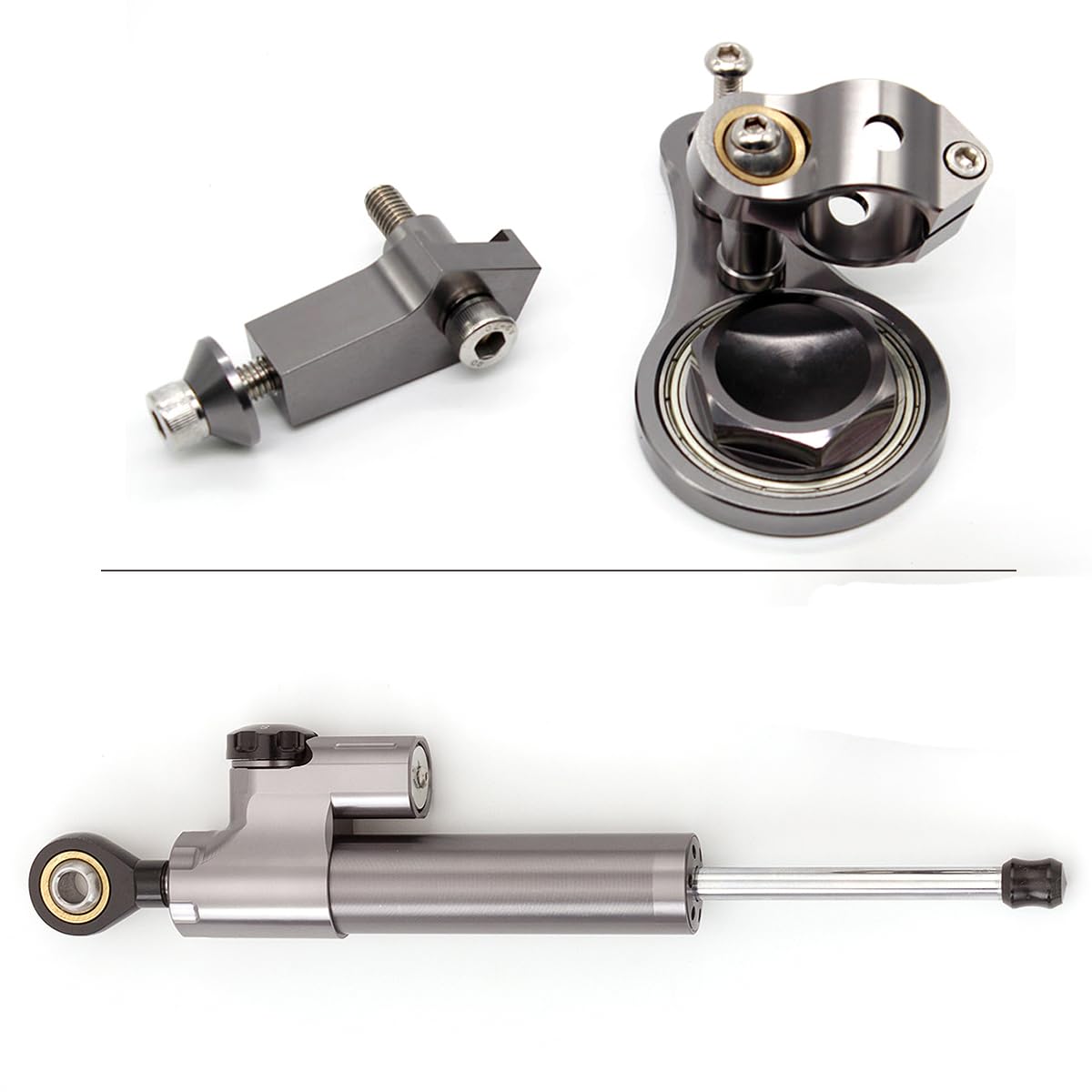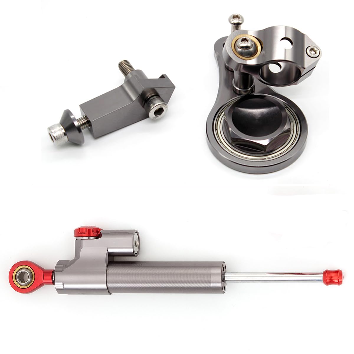 O Fit For Ninja 600 ZX-6 R ZX6R ZX 6R 2005 2006 é um estabilizador de direção CNC projetado para motocicletas, que melhora a estabilidade e o controle durante a pilotagem. Este kit completo inclui um suporte de montagem, facilitando a instalação. Suas principais características incluem ajuste de resistência, construção em alumínio durável e design leve, que contribuem para uma condução mais segura e confortável. Ideal para pilotos que buscam performance e segurança em suas aventuras sobre duas rodas.