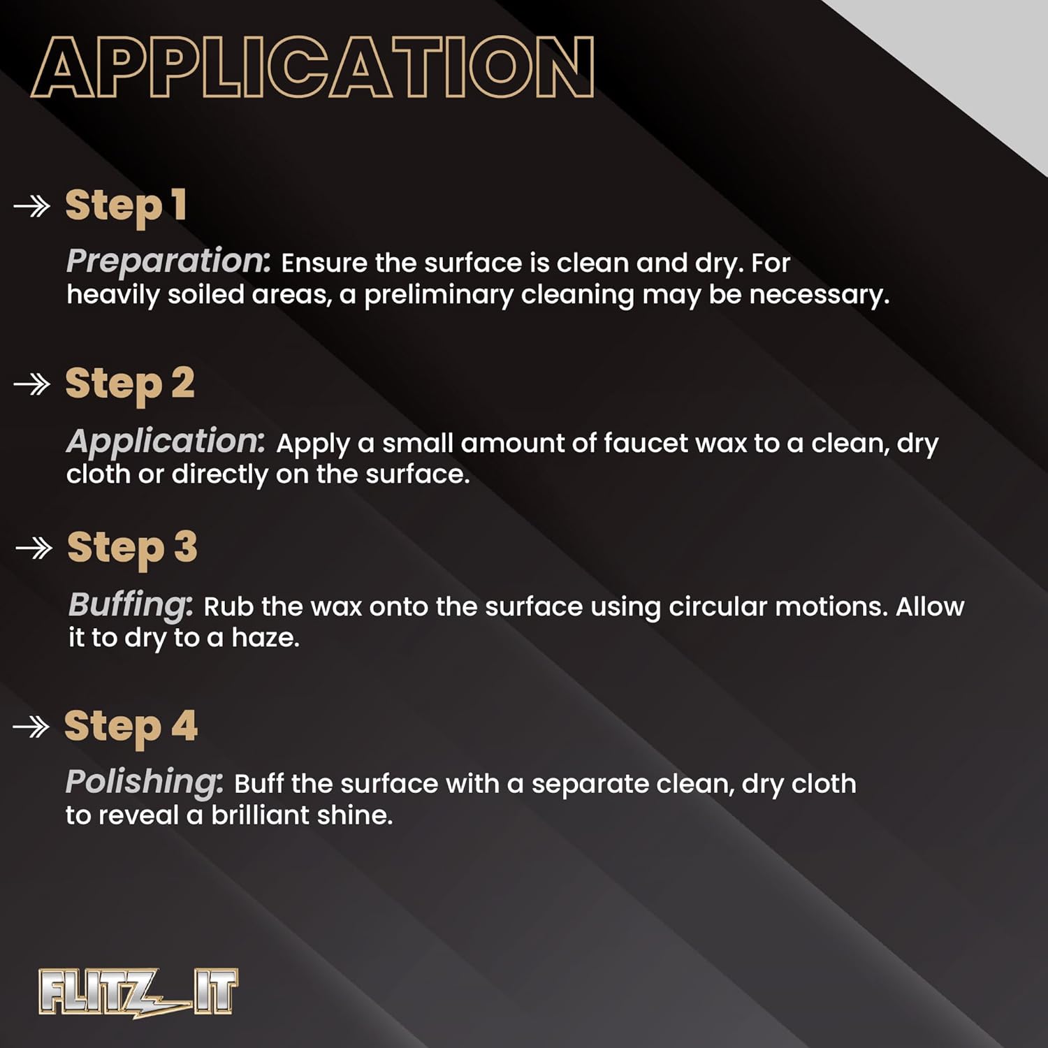 1. Agite bem a embalagem do Flitz Faucet Wax antes de usar.