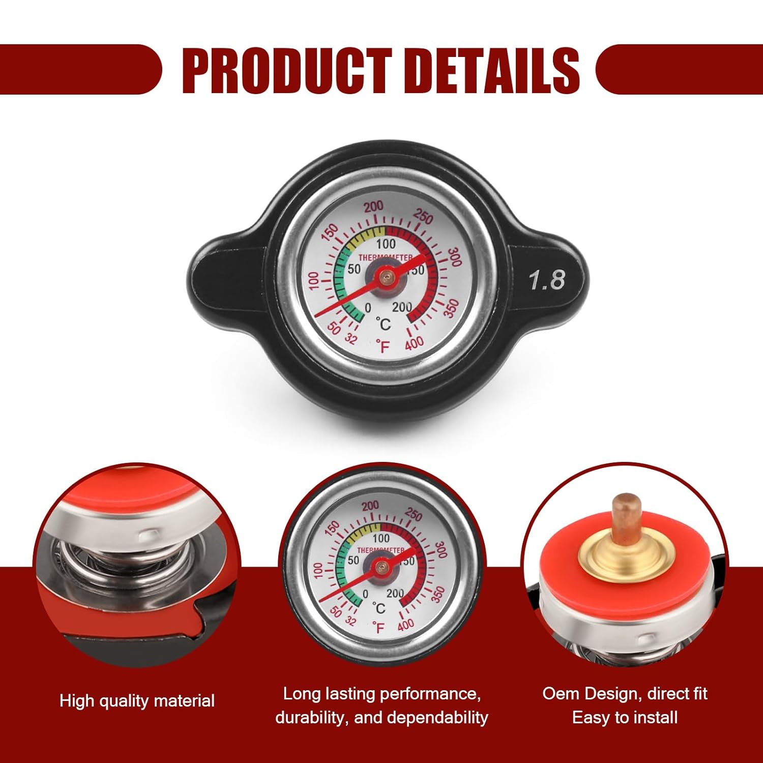 11 avaliações para Capô de Radiador Fogfar 1 PC 1.8 com Medidor de Temperatura – Tampa de Metal Durável para Automóveis e Motocicletas, Acessórios Universais para Radiador