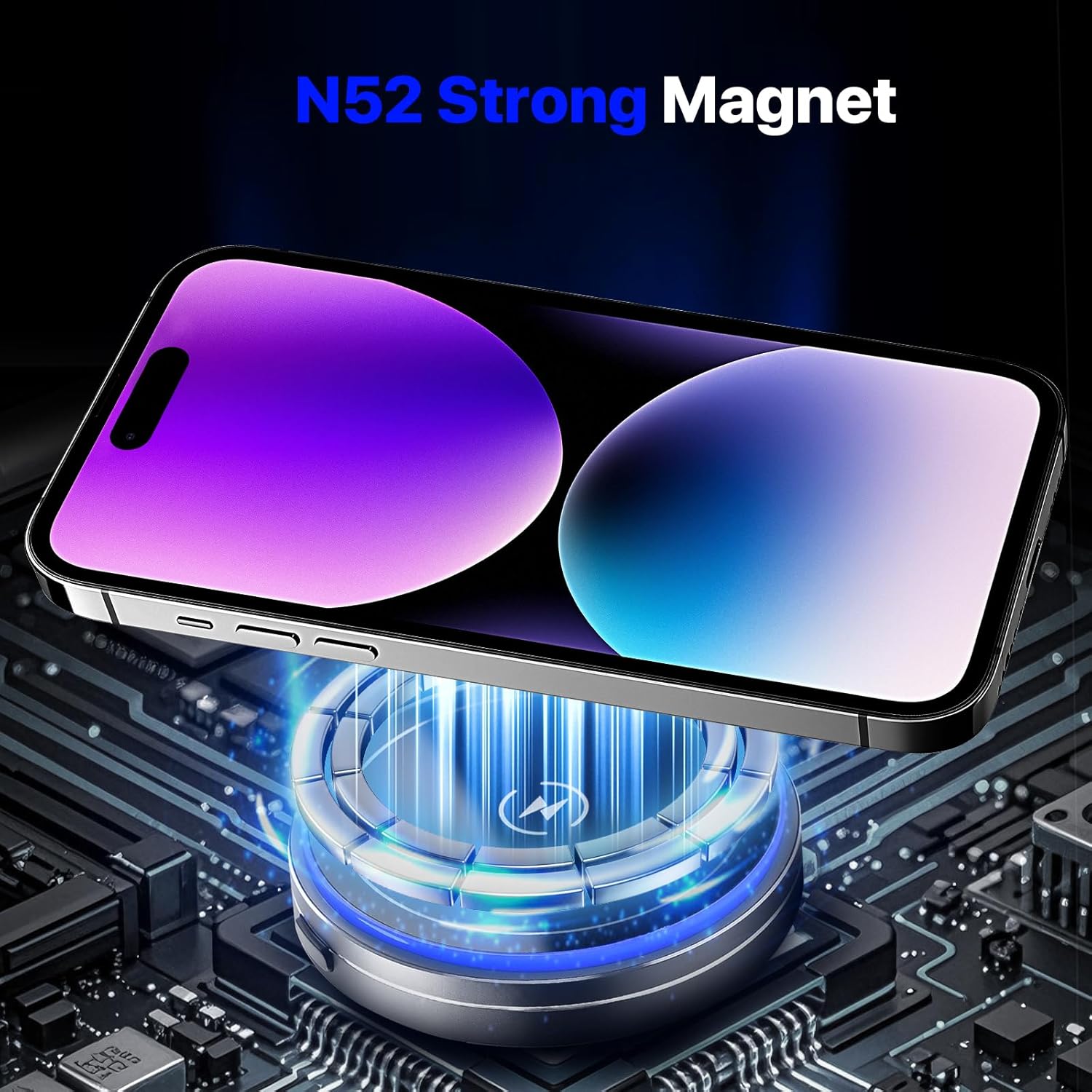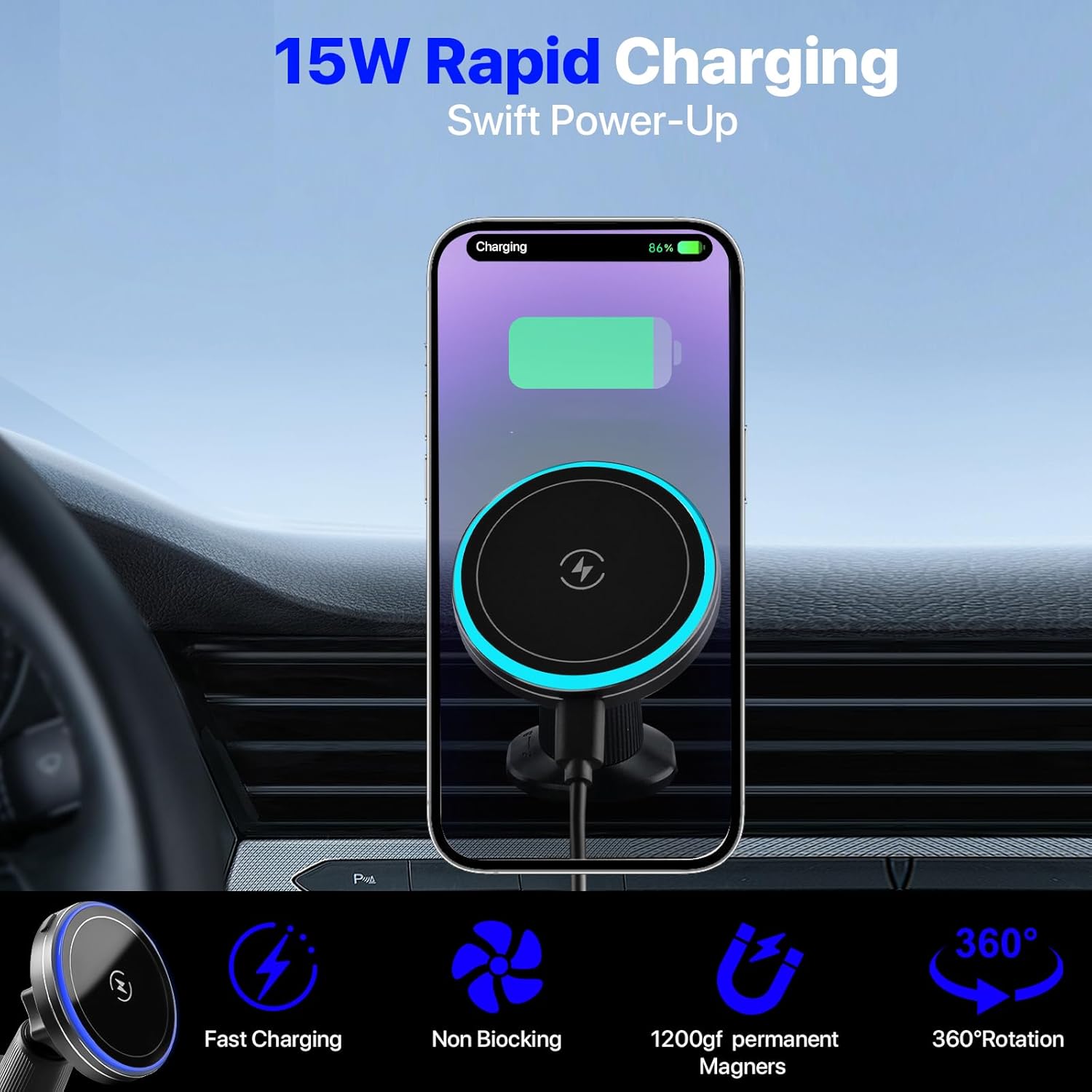 I bought this wireless charger with a magnetic car mount, and I’m very satisfied. The grip is strong and secure, keeping my iPhone in place even on bumpy roads. The wireless charging is fast and efficient, eliminating the need to constantly plug in cables.