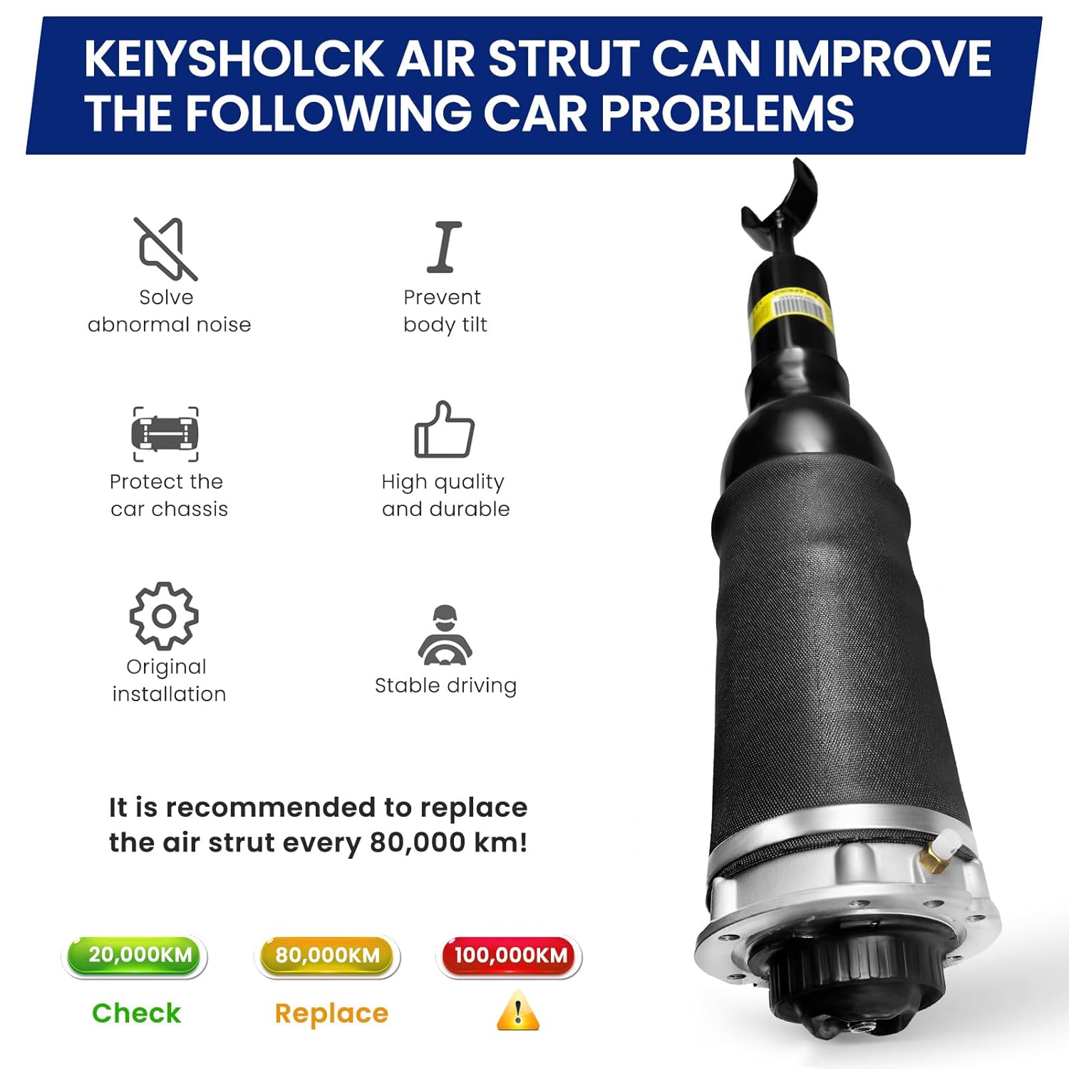 • QUALITY ASSURANCE: A KEIYSHOLCK se compromete a criar suspensões de ar duráveis e de alto desempenho. Cada estrutura de ar foi testada rigorosamente para garantir um encaixe adequado com o equipamento original, proporcionando confiança e segurança ao dirigir.
