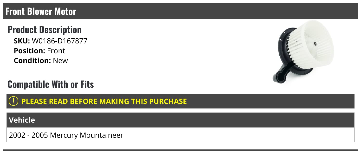 Descrição do Produto: Motor do Ventilador Frontal – Compatível com Mercury Mountaineer 2002-2005