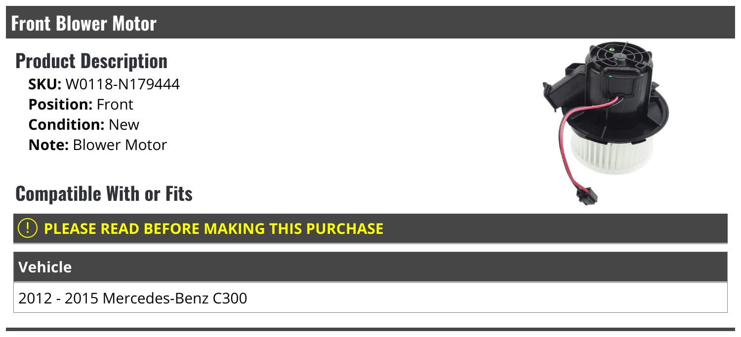 Descrição do Produto: Motor do Ventilador Frontal – Compatível com Mercedes-Benz C300 (2012-2015)