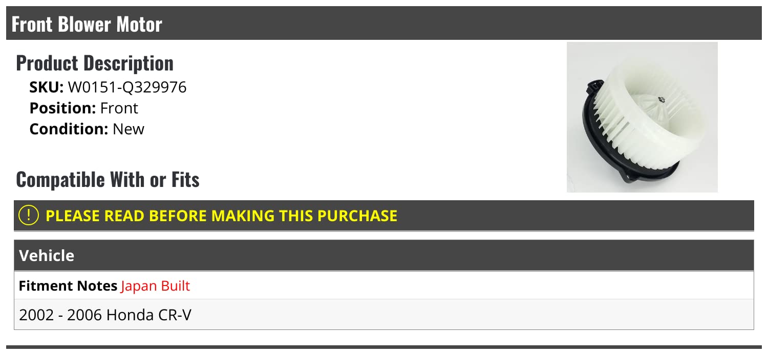 ### Descrição do Produto: Motor do Ventilador Frontal – Compatível com Honda CR-V 2002-2006