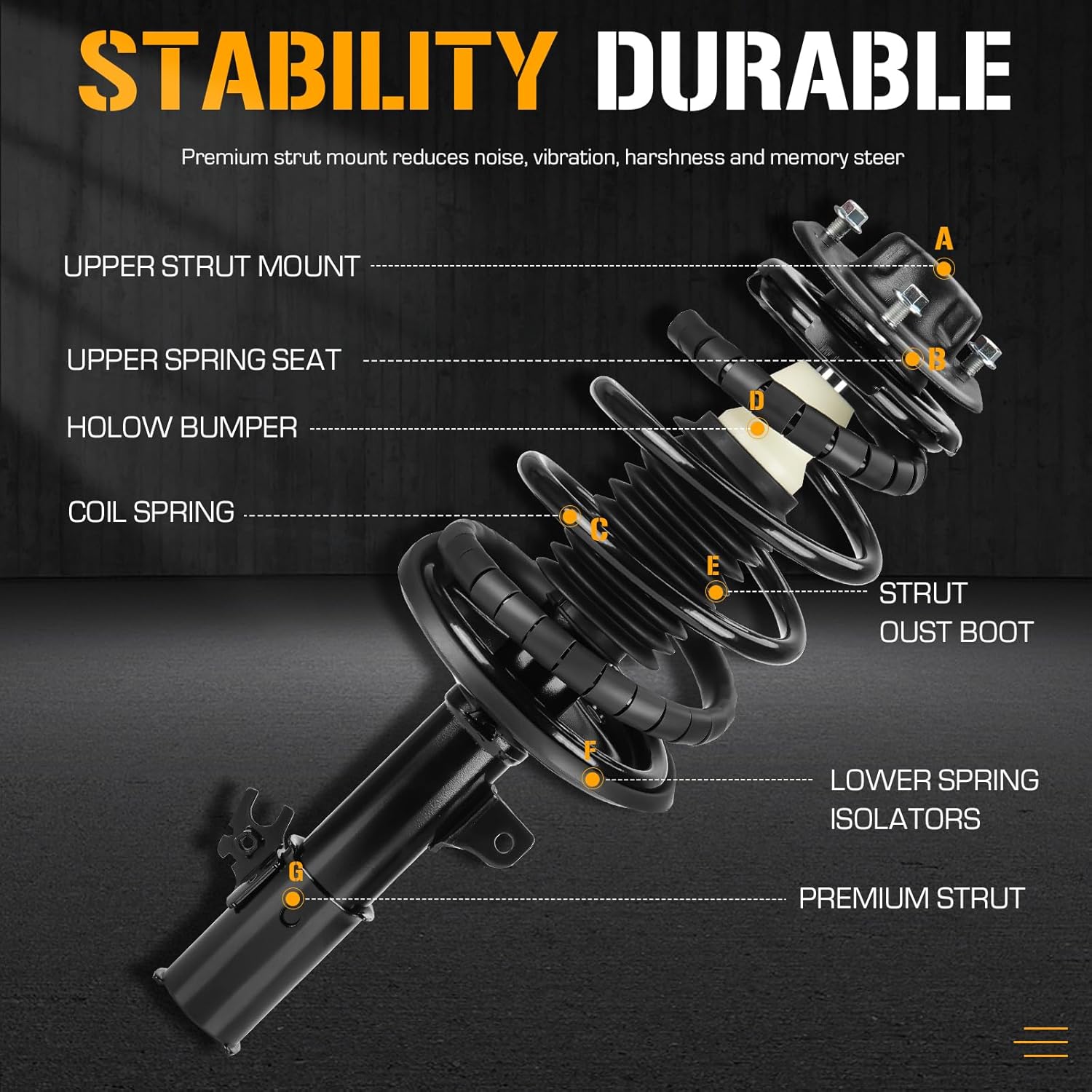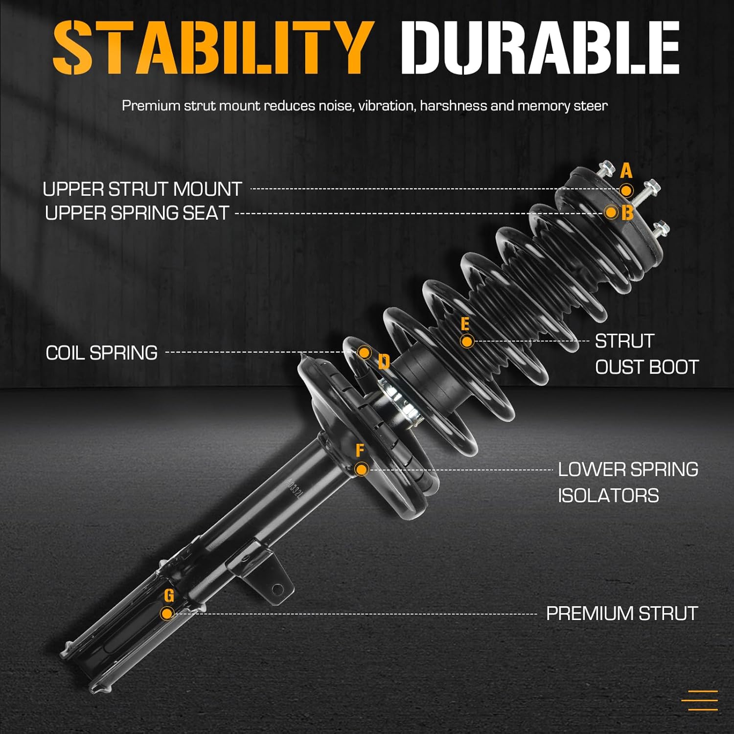 – 2 Pcs (1 Par) de montagem completa de strut, que inclui todos os componentes necessários para uma instalação eficiente.