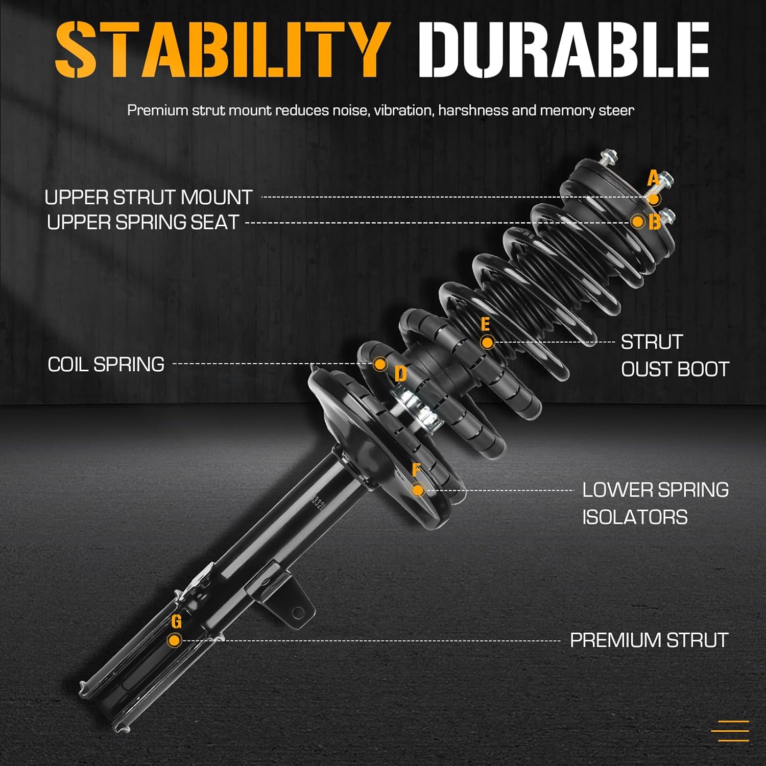 • Incluso: O conjunto inclui 2 peças (1 par) de montagem completa de amortecedor, equipadas com amortecedor, mola, mola e suportes. Substitui as montagens completas de amortecedor: 171980, 171979.