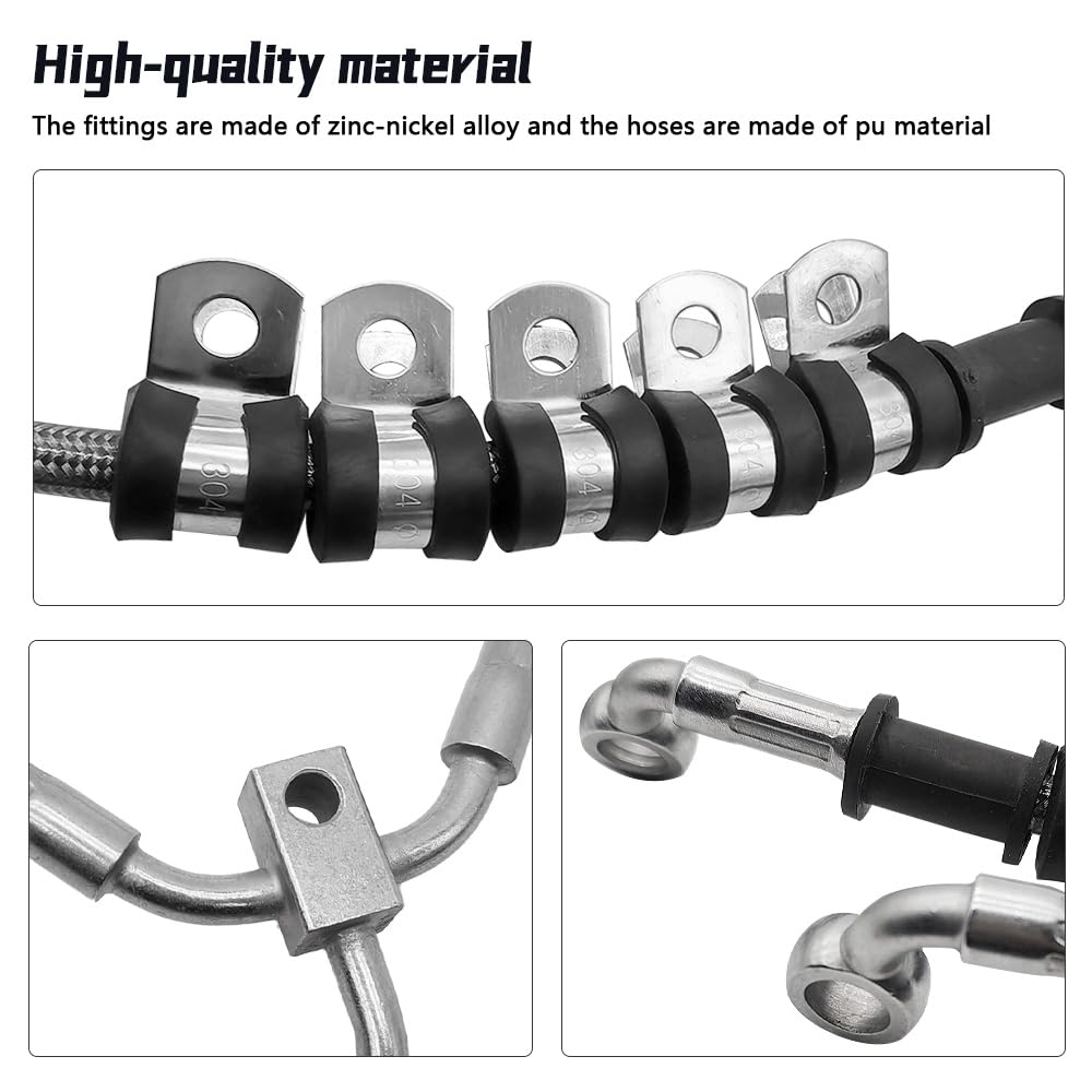 - Excelente Material: A mangueira de freio flexível dianteira possui excelente resistência à corrosão, alta resistência a temperaturas elevadas e baixas, adaptando-se a uma variedade de ambientes de condução adversos.