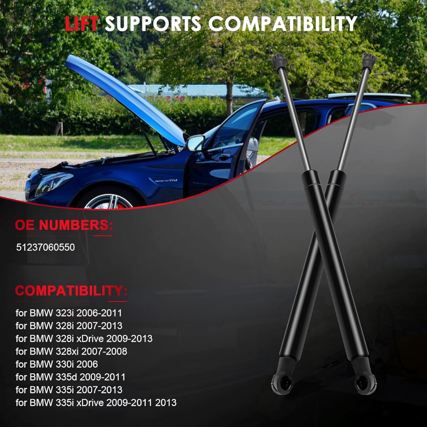 Suportes de Capô a Gás 51237060550 para BMW 323i, 328i, 328i xDrive, 328xi, 330i, 335d, 335i e 335i xDrive – Peças de Substituição