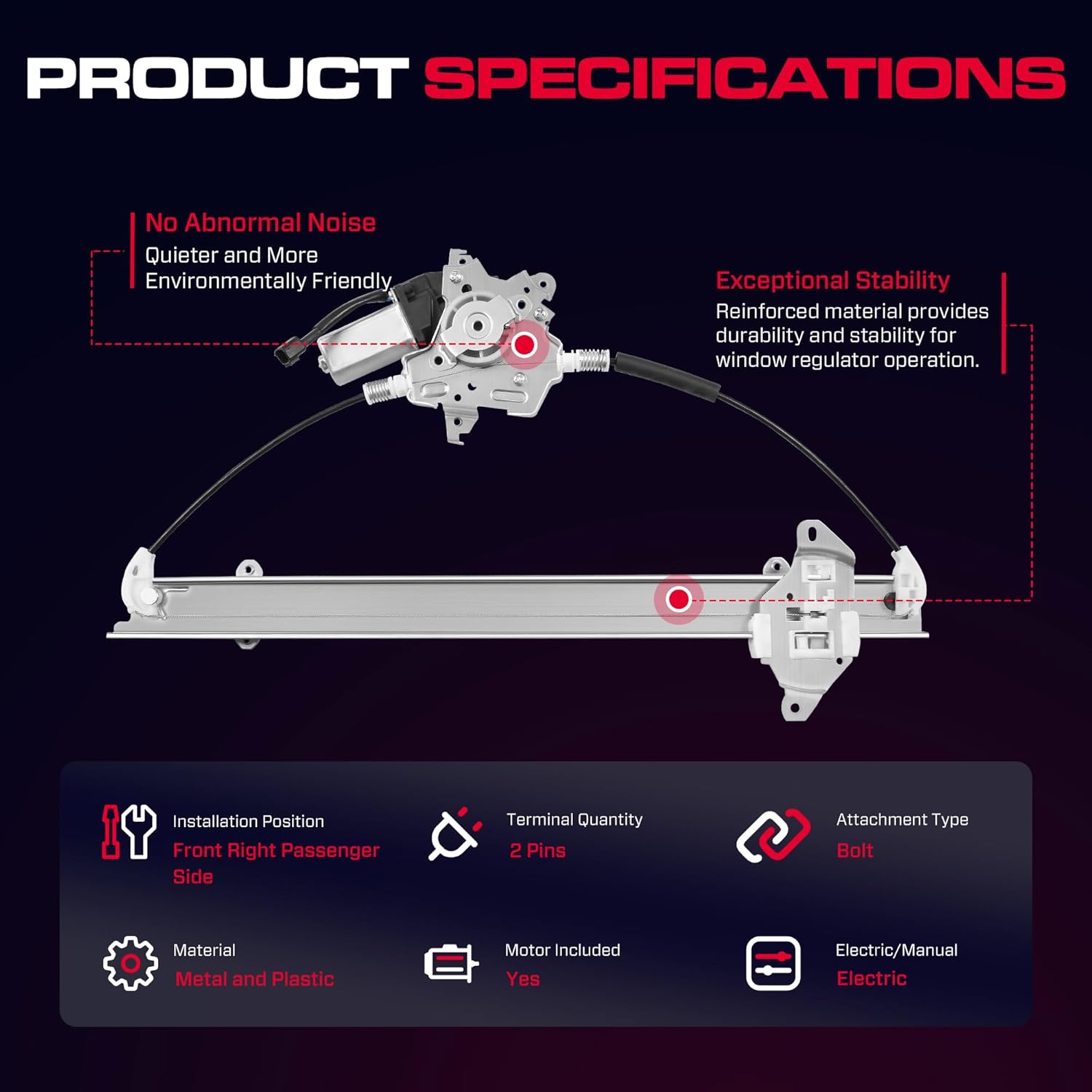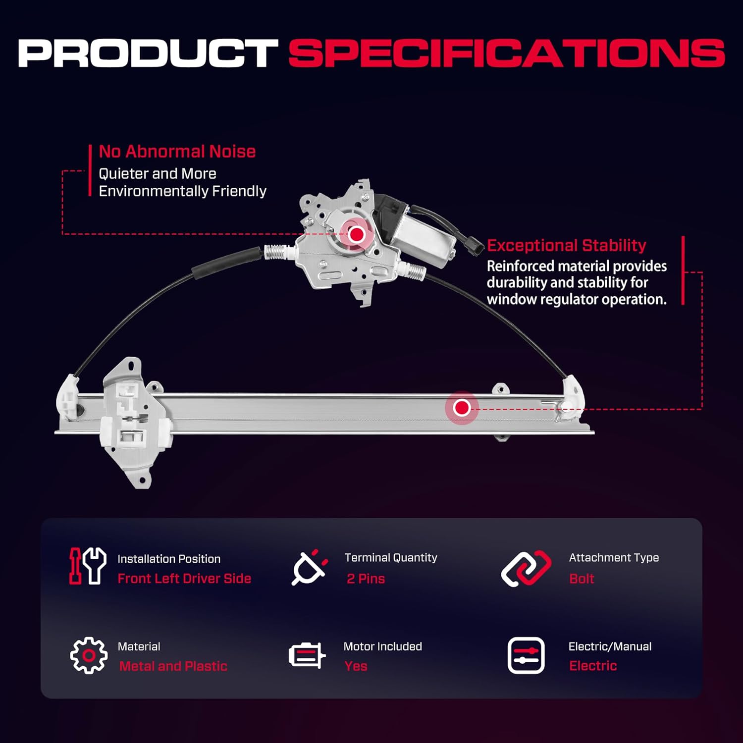 Com pontos de montagem precisos, a instalação do conjunto do regulador de janela é descomplicada, permitindo que você retome a funcionalidade da janela do seu carro em pouco tempo. Este produto é especialmente projetado para veículos que utilizam um motor de 2 pinos, garantindo que você tenha a peça correta para o seu modelo específico. O número OEM 741-349, juntamente com os códigos 80720EA000 e 80730EA005, assegura a compatibilidade e a qualidade do produto.