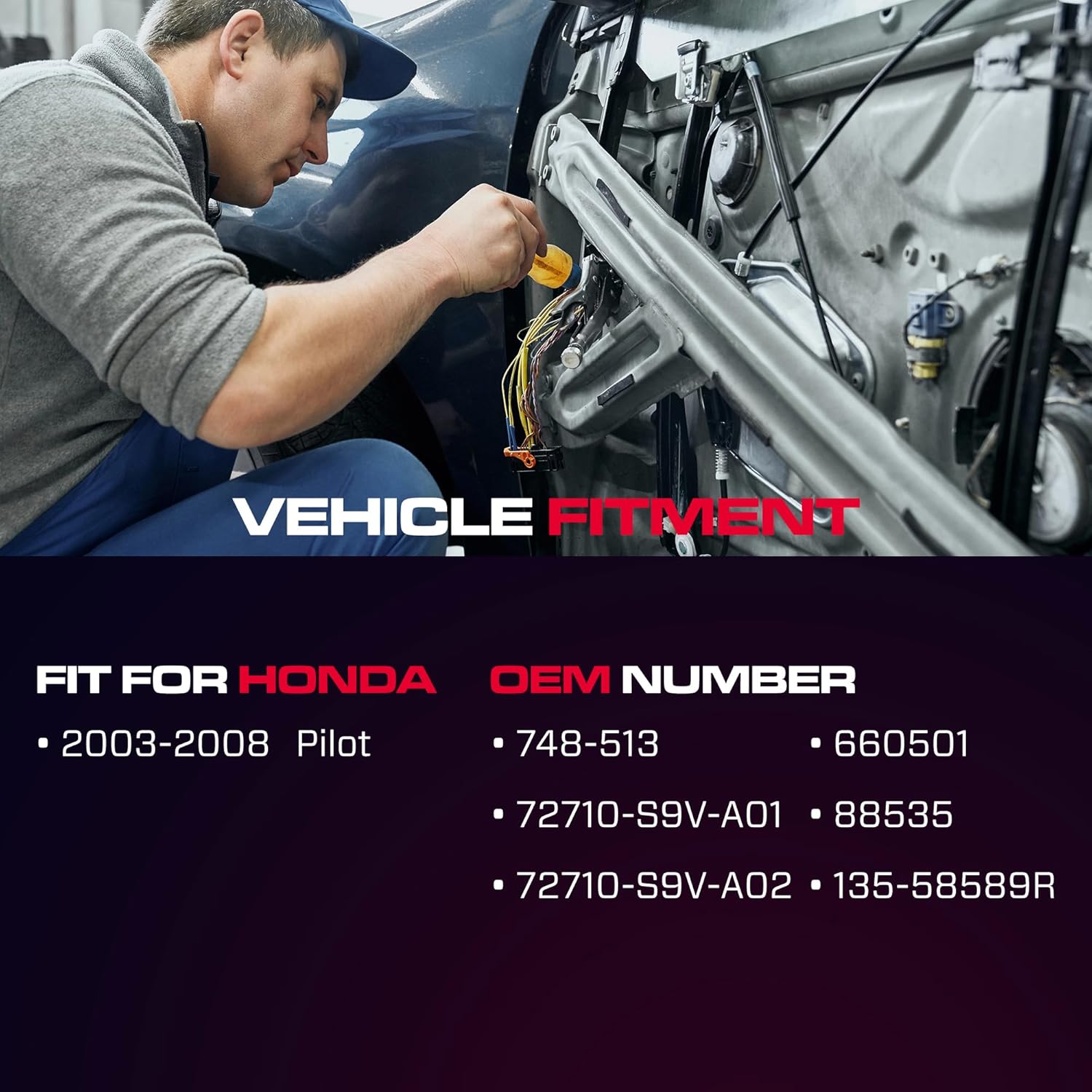 - Modelos de Veículo: Este regulador de janela do lado do passageiro frontal é compatível com o Honda Pilot V6 3.5L Sport Utility de 2003 a 2008. Antes de realizar a compra, verifique se seu veículo é compatível.