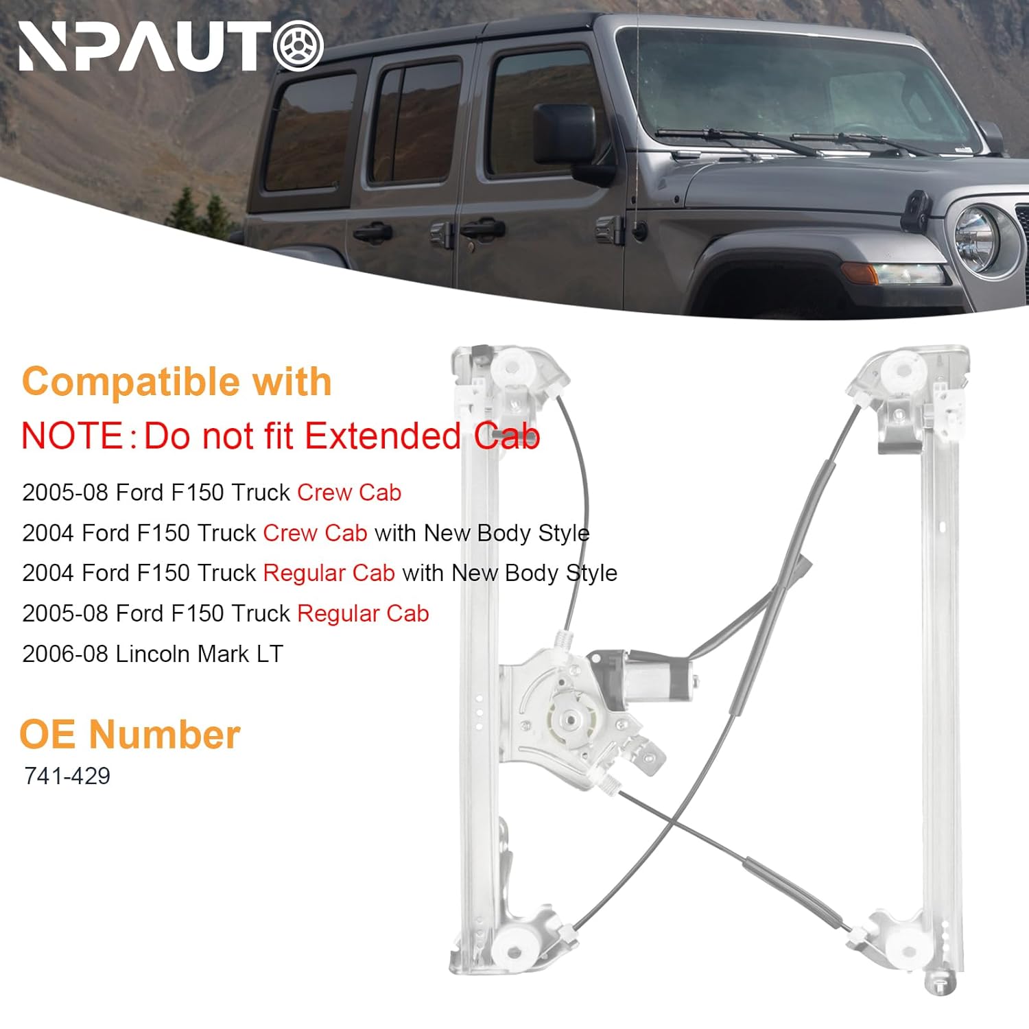 – Compatibilidade: Este regulador de janela é compatível com os modelos Ford F-150 dos anos 2004, 2005, 2006, 2007 e 2008 (cabines padrão ou crew cab, não se aplica a cabines estendidas). Verifique as dimensões das portas, que devem ter 43,5″ de largura, antes da compra.