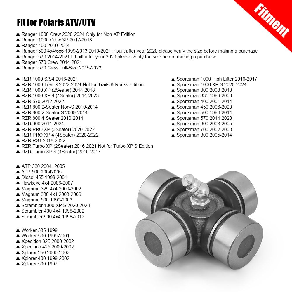 Este U-Joint é compatível com uma ampla gama de modelos Polaris ATV/UTV, incluindo: