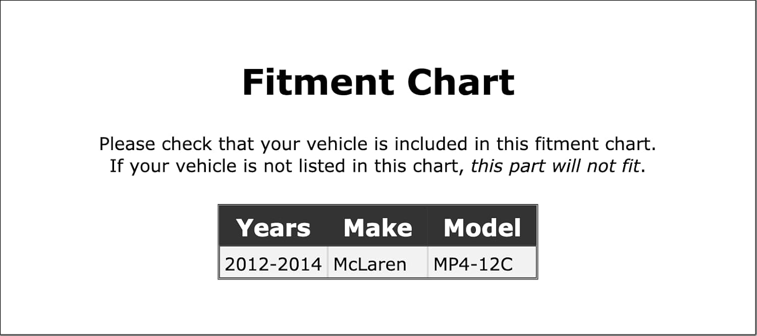 – Compatibilidade Garantida: Testada para garantir que se encaixa perfeitamente nos modelos McLaren MP4-12C de 2012 a 2014.