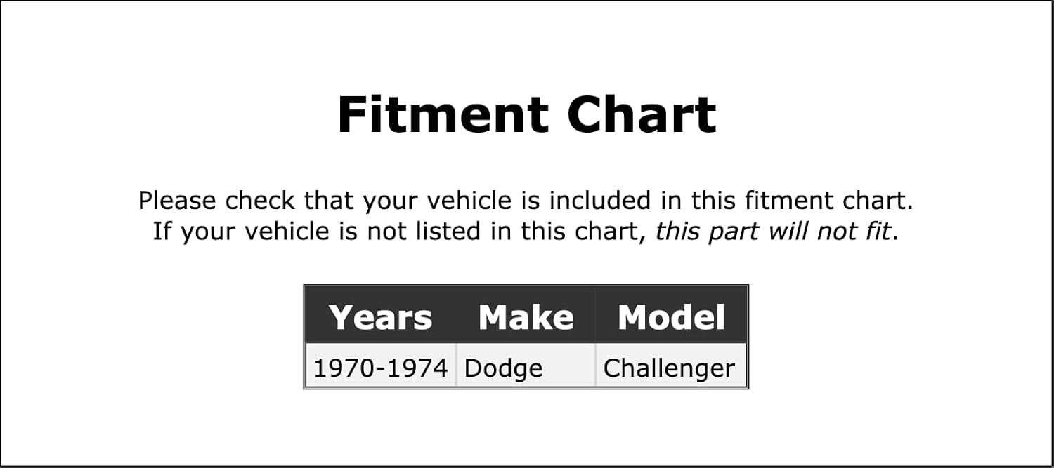 – Modelo Compatível: Dodge Challenger 1970, 1971, 1972, 1973, 1974