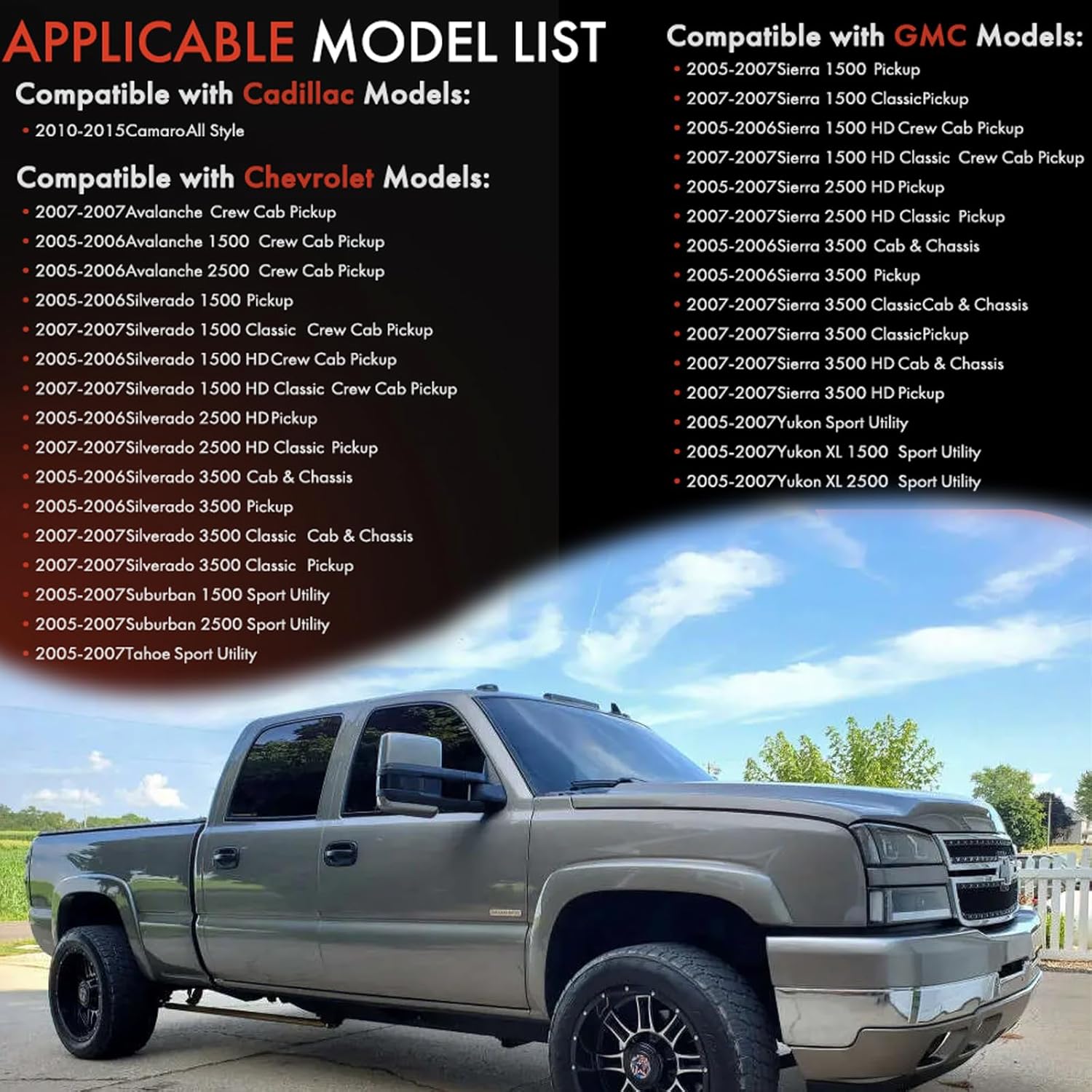 – Silverado 1500 (2005-2006), Silverado 1500 Classic (2007), Silverado 1500 HD (2005-2006), Silverado 1500 HD Classic (2007)