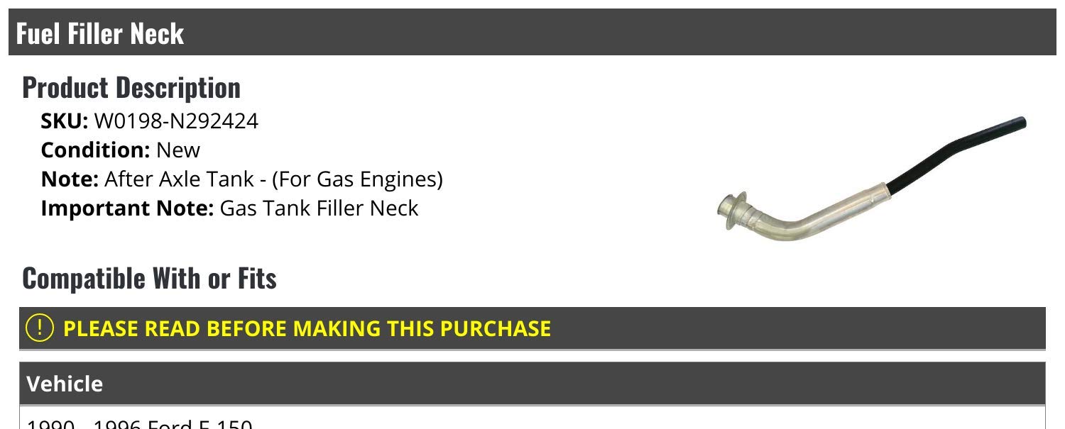 1 avaliação para Tubo de Abastecimento para Tanque Traseiro – Compatível com Ford F-150 GAS 1990-1996 (Exclui Diesel)