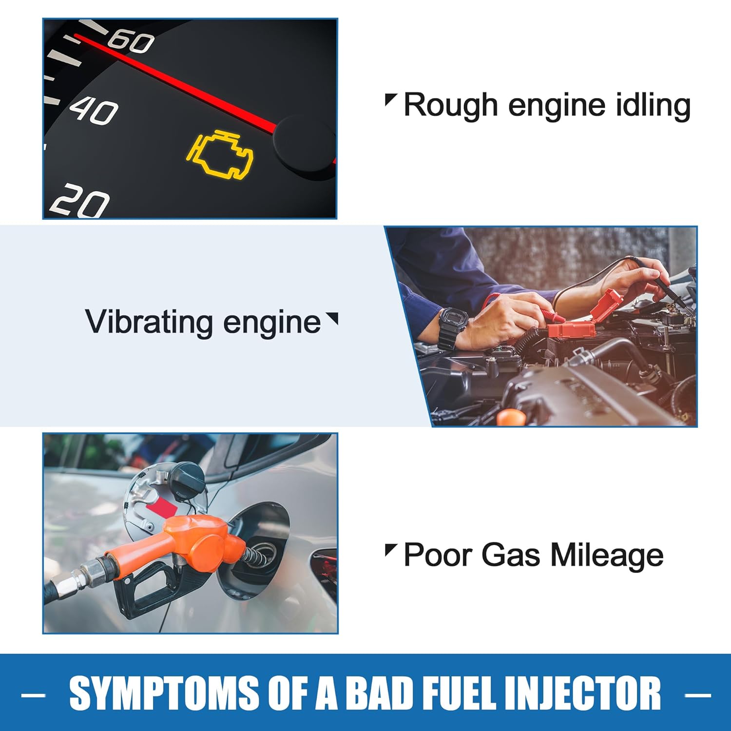 Instalação: A instalação profissional é altamente recomendada, pois os injetores de combustível afetam diretamente a relação ar/combustível do motor. É essencial que novos injetores sejam acompanhados de uma nova ou atualizada programação do motor. Também sugerimos verificar outros componentes do motor antes da instalação.