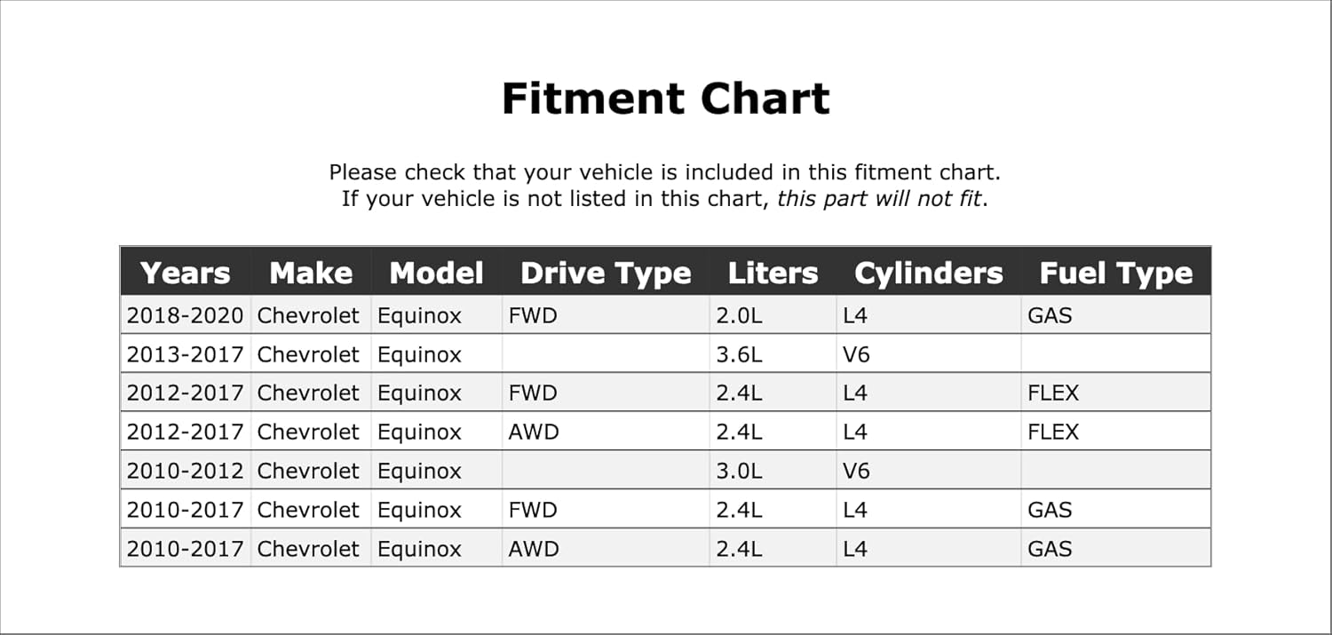 – Compatibilidade: Compatível com diversos modelos de Chevrolet Equinox, conforme listado na galeria de imagens.