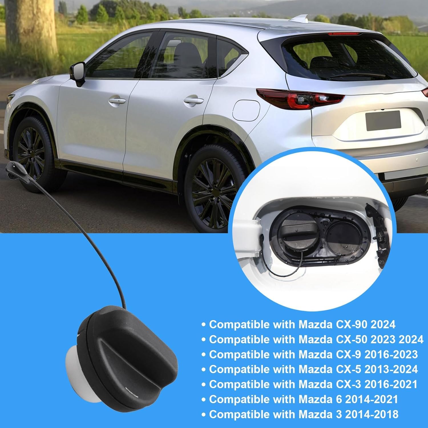 A tampa de combustível FZJDSD é a solução ideal para quem busca qualidade e compatibilidade para os modelos Mazda. Com um design meticulosamente elaborado, esta tampa é compatível com uma ampla gama de veículos, incluindo o Mazda CX-90 2024, CX-50 2023 e 2024, CX-9 de 2016 a 2023, CX-5 de 2013 a 2024, CX-3 de 2016 a 2021, Mazda 6 de 2014 a 2021 e Mazda 3 de 2014 a 2018. O número da peça KD35-42-250A e KD3542250A garante que você está adquirindo um produto que se encaixa perfeitamente no seu veículo.