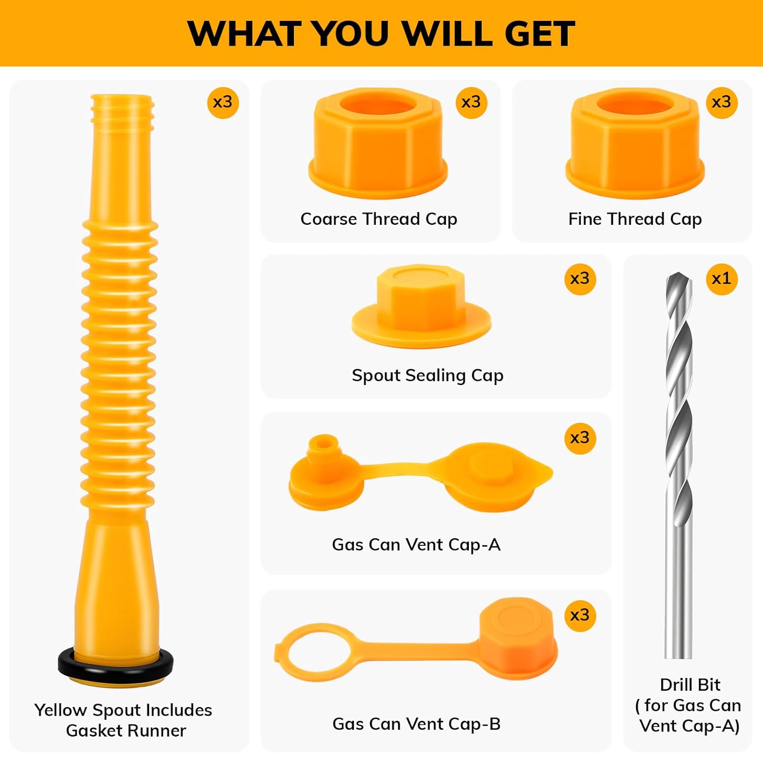 This set of replacement gas can spouts and caps allowed me to keep and use a gas can that no longer had a cap or spout. The original equipment had broken and without them the can was useless. This kit comes with 3 complete sets of replacement parts. I only needed to use the spout, a cap, and a gasket and they fit and worked fine with leakproof seals. The kits have parts that allow you to replace both large and small threaded caps, as well as vent options. It includes a drill bit to add a vent hole for cans that don’t have one. I have other gas cans with more “sophisticated” nozzles that are difficult to use and actually make spillage more likely, so I may use these parts to make those cans easier and safer to use.