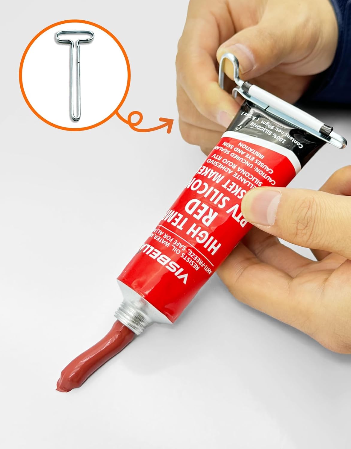 Comes with a tube squeezer, easy to open cap as well. Used on a water pump job to backup a thin weak paper gasket. Outlined the gasket and let it set for a couple of mins, tightened then waited a little more then final torqued down