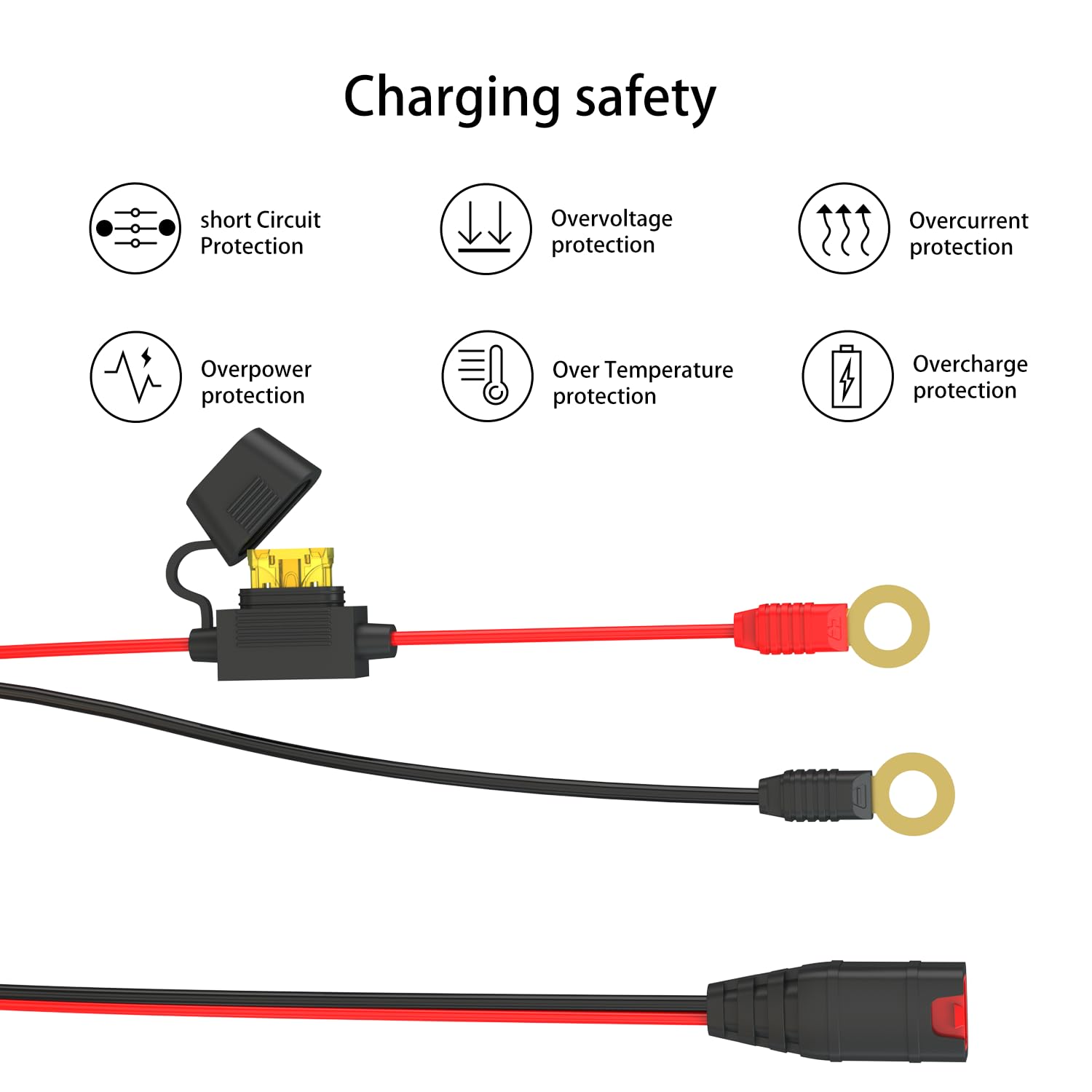Got these so I could get more use out of my charger and they work great. With the eyelets you can leave them attached to the battery and tucked out of the way until needed. They are well built and fused. There is also a protective dust cap for the connection end which helps keep it clean and easy to connect.