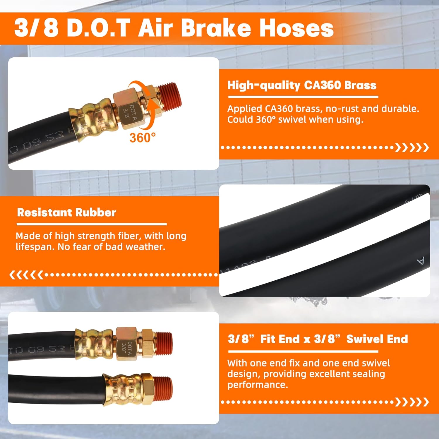Com uma ampla aplicação, o Gerguirry 3/8” Air Brake Hose é compatível com diversas marcas e modelos de caminhões semi-reboque, ideal para reparos de emergência e manutenção rotineira. Ele proporciona uma transmissão de pressão de ar consistente, garantindo que cada viagem seja segura e eficaz. Substitua seu kit de mangueira de freio a ar com confiança.