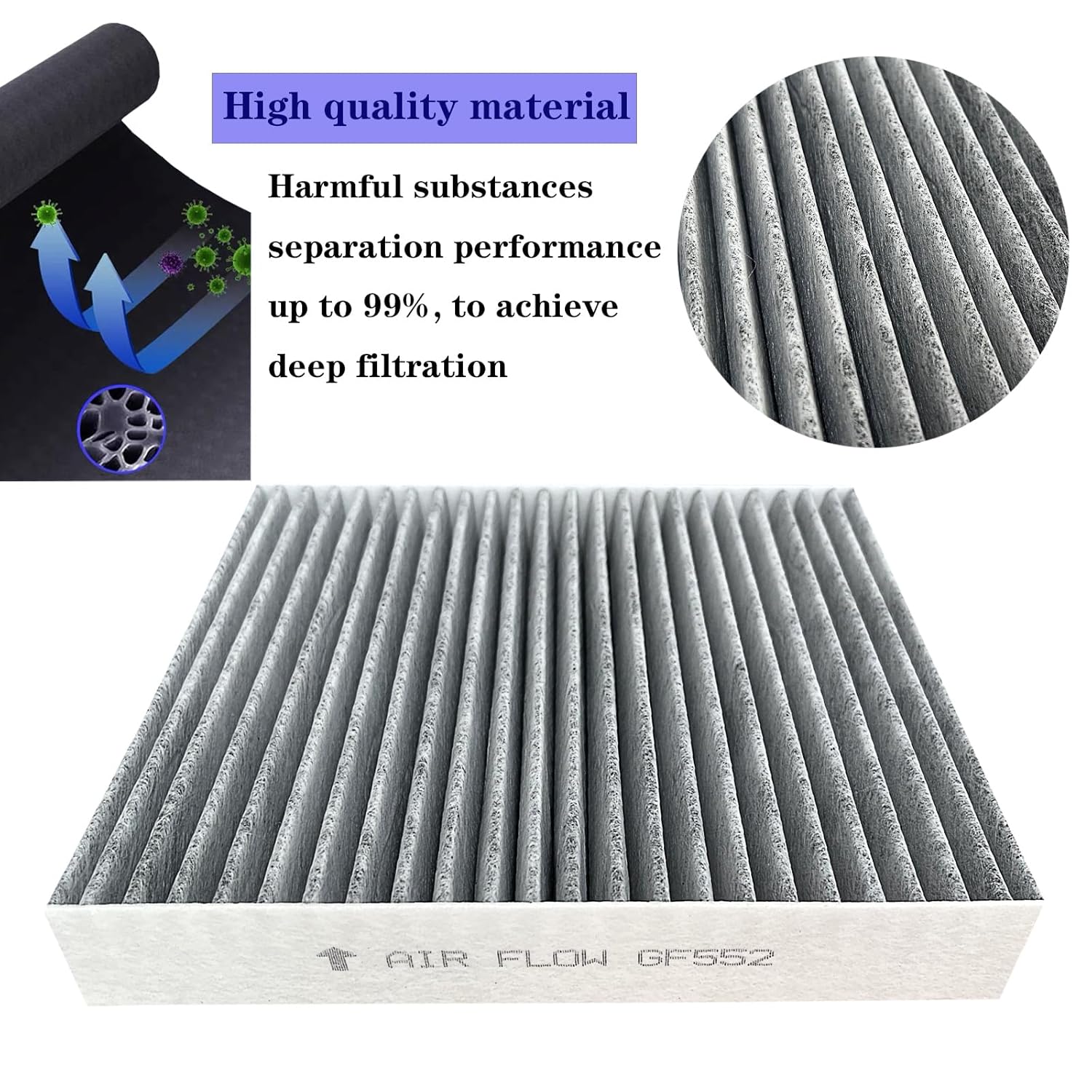 O GF552 é um substituto direto para as peças FDC12552C, CAF10027C, 230447, 27277-5NA1A, 27277-6CA0A, 27277-6CA1A, C21496C, C1496C, WCAF10027 e WP10447, oferecendo uma solução prática e confiável. Para garantir a máxima eficiência, recomenda-se a substituição do filtro a cada 12 meses ou a cada 12.000 milhas, assegurando que o ar que circula no interior do seu veículo esteja sempre limpo e fresco.