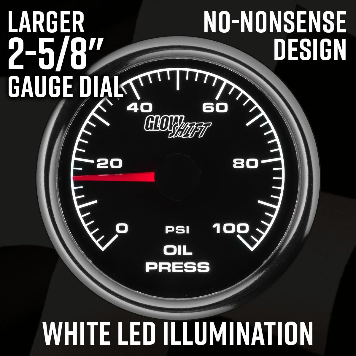 ### GlowShift 2-5/8″ Racing 100 PSI Oil Pressure Gauge Kit