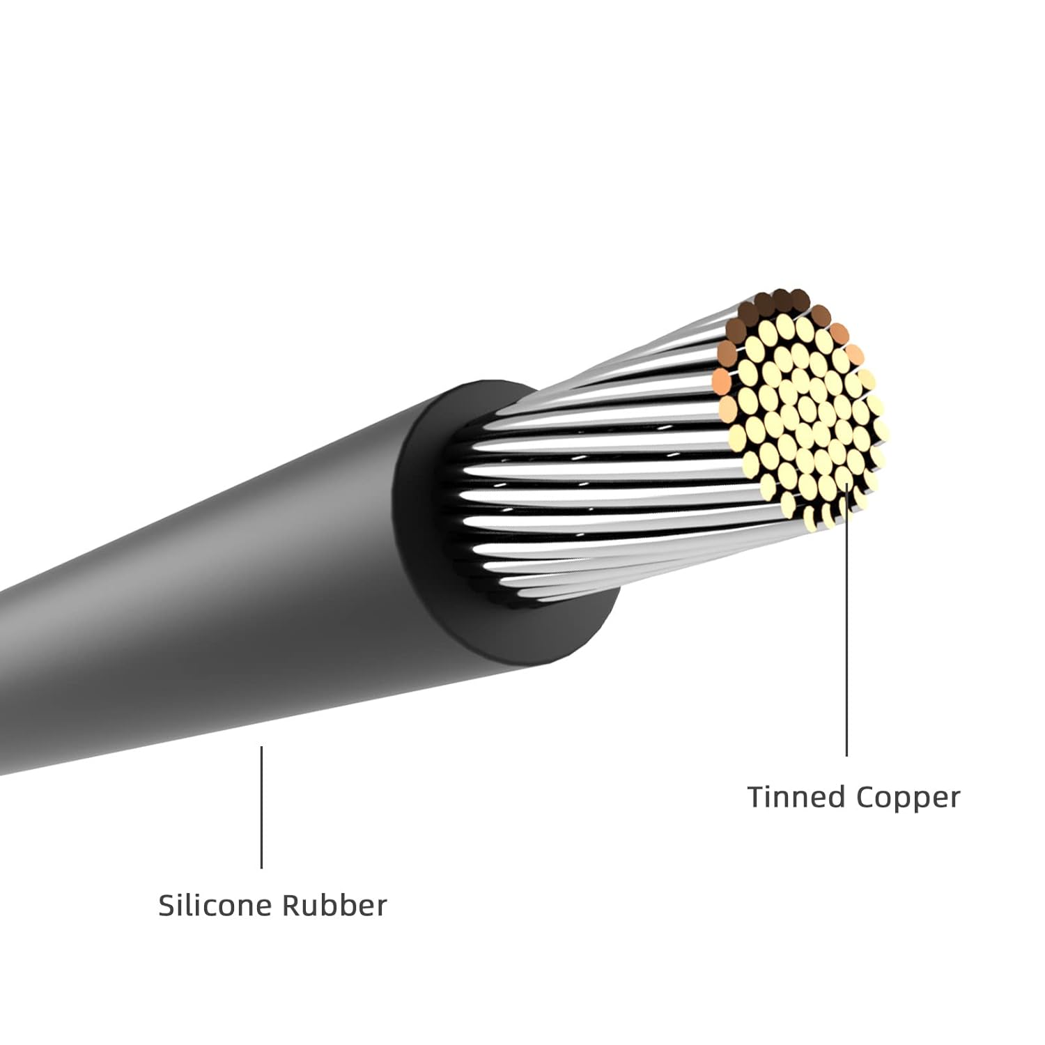 A proteção do cabo é garantida por uma capa de PVC de dupla camada, que proporciona um excelente efeito de isolamento, resistindo a temperaturas de até 105 °C e suportando uma tensão nominal de 600V. Com um comprimento de 2 metros (6.56 pés), ele é ideal para uma ampla gama de aplicações, desde a conexão de painéis solares a baterias até a extensão de mantenedores de bateria.