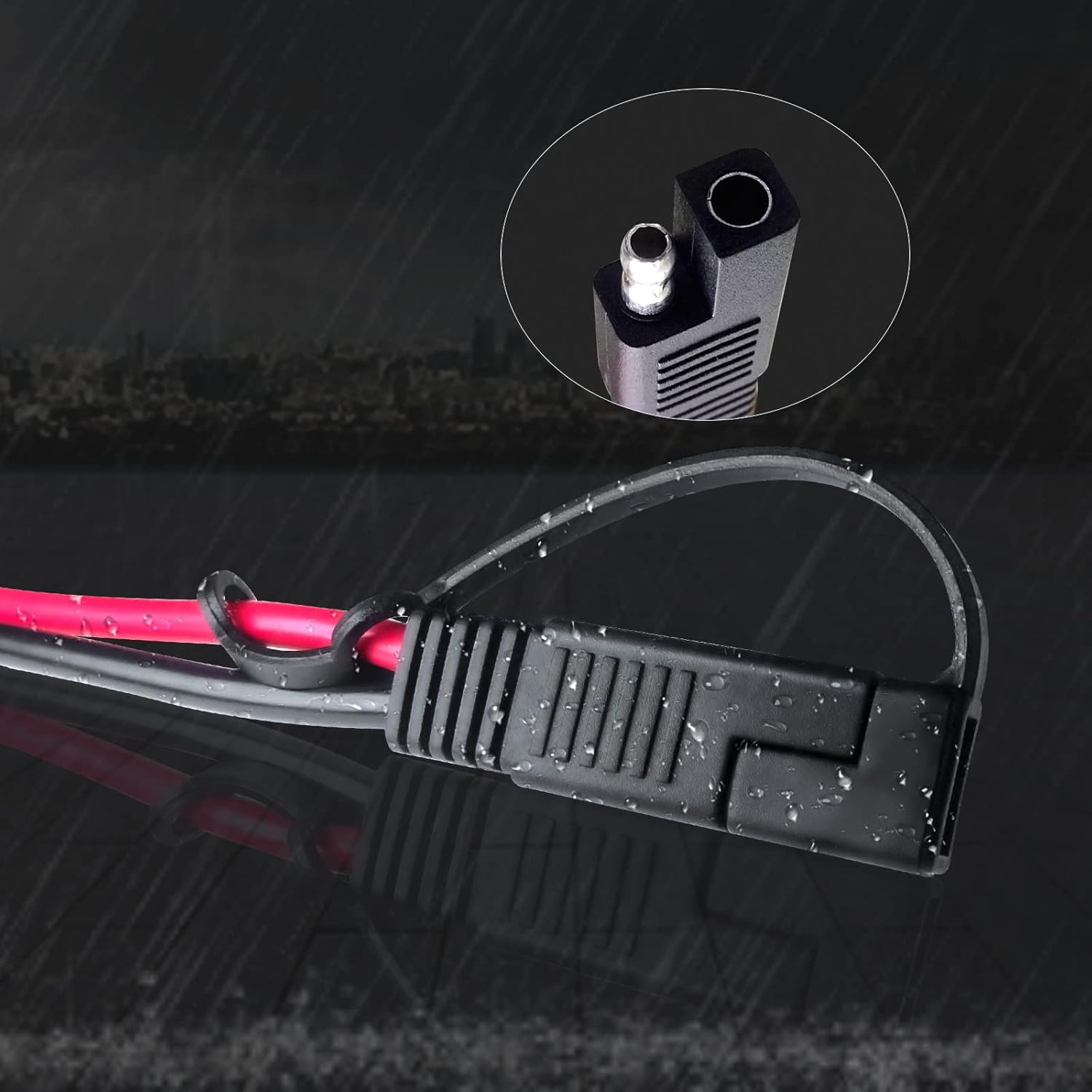Este cabo é amplamente utilizado para conectar painéis solares a baterias, estender o mantenedor de bateria e facilitar a conexão e transferência de energia solar. É compatível com uma variedade de dispositivos, incluindo baterias, painéis solares com plugue SAE, motocicletas, cortadores de grama, ATV, RV, motores de tração, tratores, caiaques, pulverizadores de tratores e outros equipamentos com portas SAE.