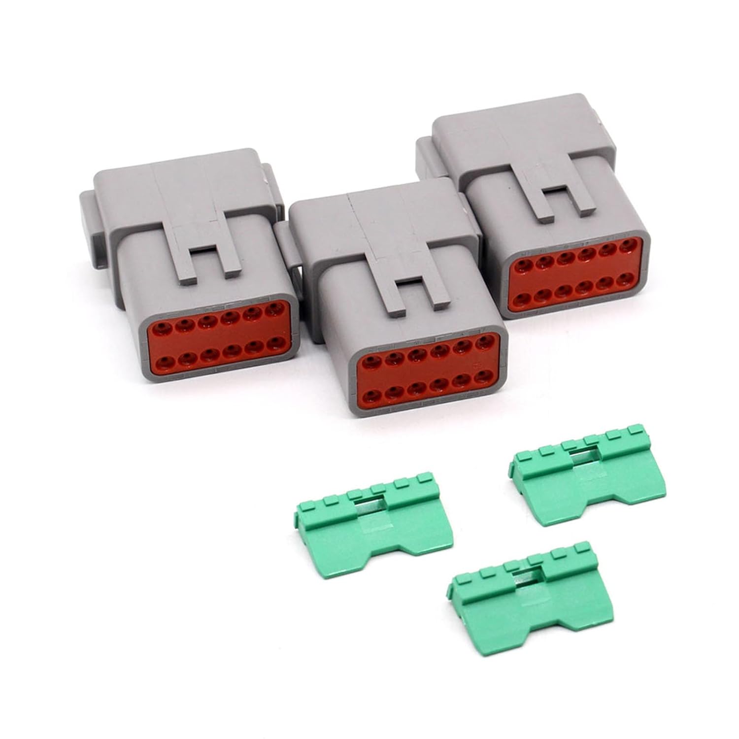 O Conector DT Series 12 Pinos Gray DT06-12S e DT04-12P é a solução ideal para quem busca qualidade e durabilidade em conexões elétricas. Fabricado em PBT cinza, este conector apresenta um design de fecho que garante resistência e impermeabilidade, facilitando a instalação e a desmontagem, o que prolonga sua vida útil. Com contatos sólidos de cobre de alta precisão, a estabilidade e a condutividade dos terminais são excepcionais, permitindo uma crimpagem fácil com fios e uma instalação descomplicada nos conectores.