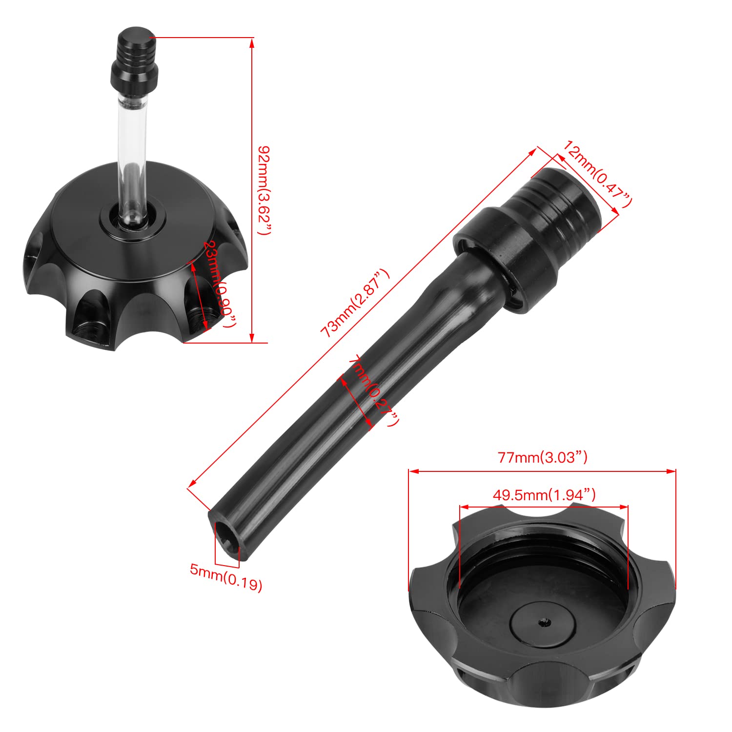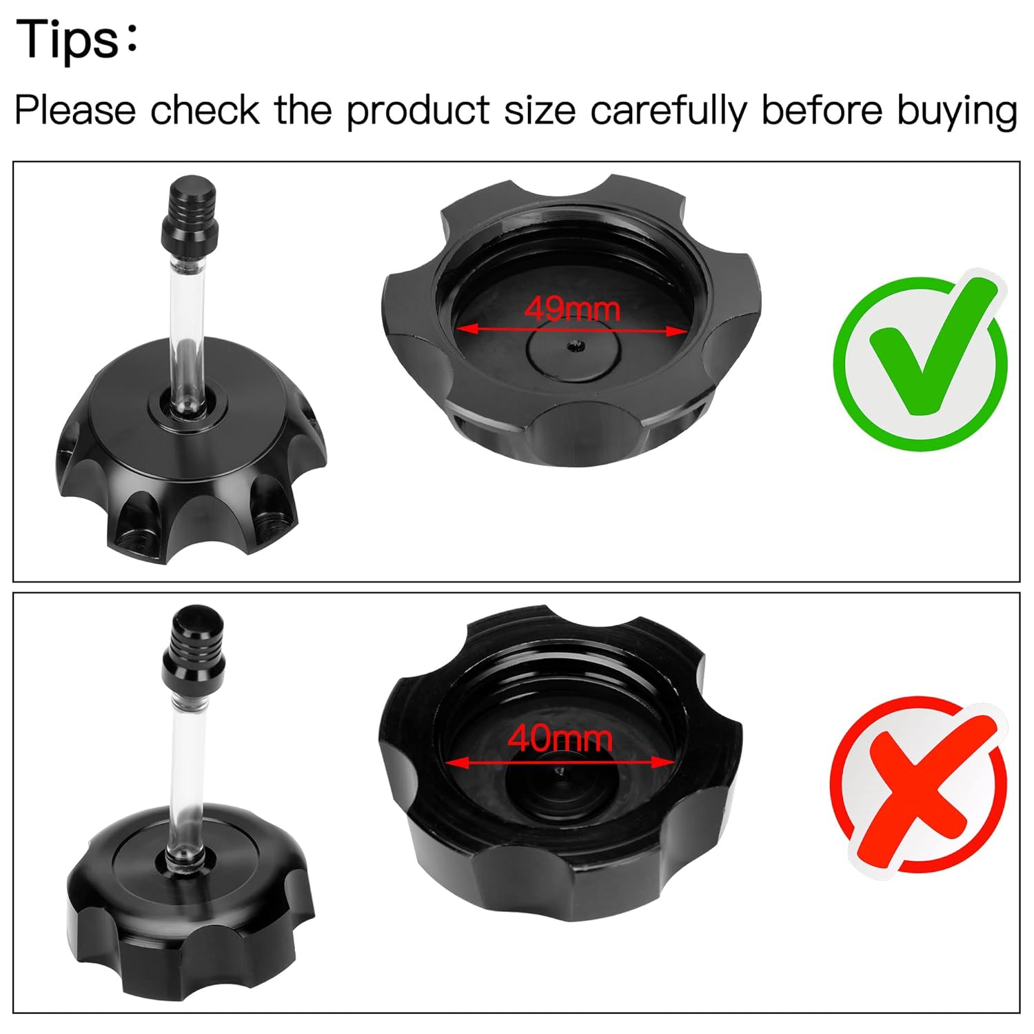 Com um diâmetro interno de 1.93″ (49mm), é essencial verificar o modelo da sua moto e medir as dimensões da porta do tanque de combustível antes da compra, garantindo que os acessórios adquiridos sejam compatíveis com seu modelo. O GREHUA Dirt Bike Fuel Cap Cover vem completo com um capô de combustível e duas mangueiras de ventilação pretas, eliminando a necessidade de comprar uma válvula de ventilação separada. Assim, você pode substituir seu capô existente de forma prática e eficiente.