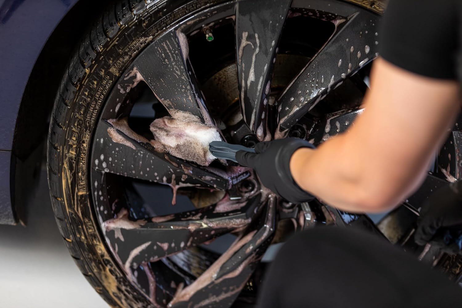 As escovas são fabricadas com um material sintético de alta resistência, que combina durabilidade e suavidade. Isso significa que, mesmo em rodas muito sujas, a escova realiza o trabalho rapidamente, removendo a sujeira sem arranhar ou danificar a superfície. O design extra longo das escovas permite que você limpe o interior das rodas com facilidade, alcançando todos os cantos e recantos que normalmente seriam inacessíveis. A cabeça porosa das escovas é especialmente eficaz na remoção da poeira de freio, adaptando-se aos contornos das rodas e garantindo uma limpeza profunda.