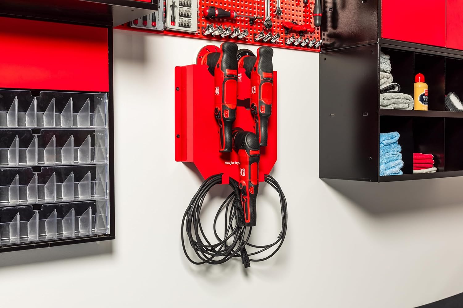 Construído em robusto aço galvanizado de 18 gauge, o Single Polisher Rack oferece durabilidade e resistência, suportando o peso e o uso frequente sem comprometer sua integridade. O acabamento em pó vermelho não apenas confere um visual atraente, mas também proporciona uma camada extra de proteção contra corrosão e desgaste, mantendo o rack em excelente estado por muito mais tempo. O logotipo cortado a laser adiciona um toque de sofisticação, tornando-o um item que se destaca em qualquer oficina ou garagem.