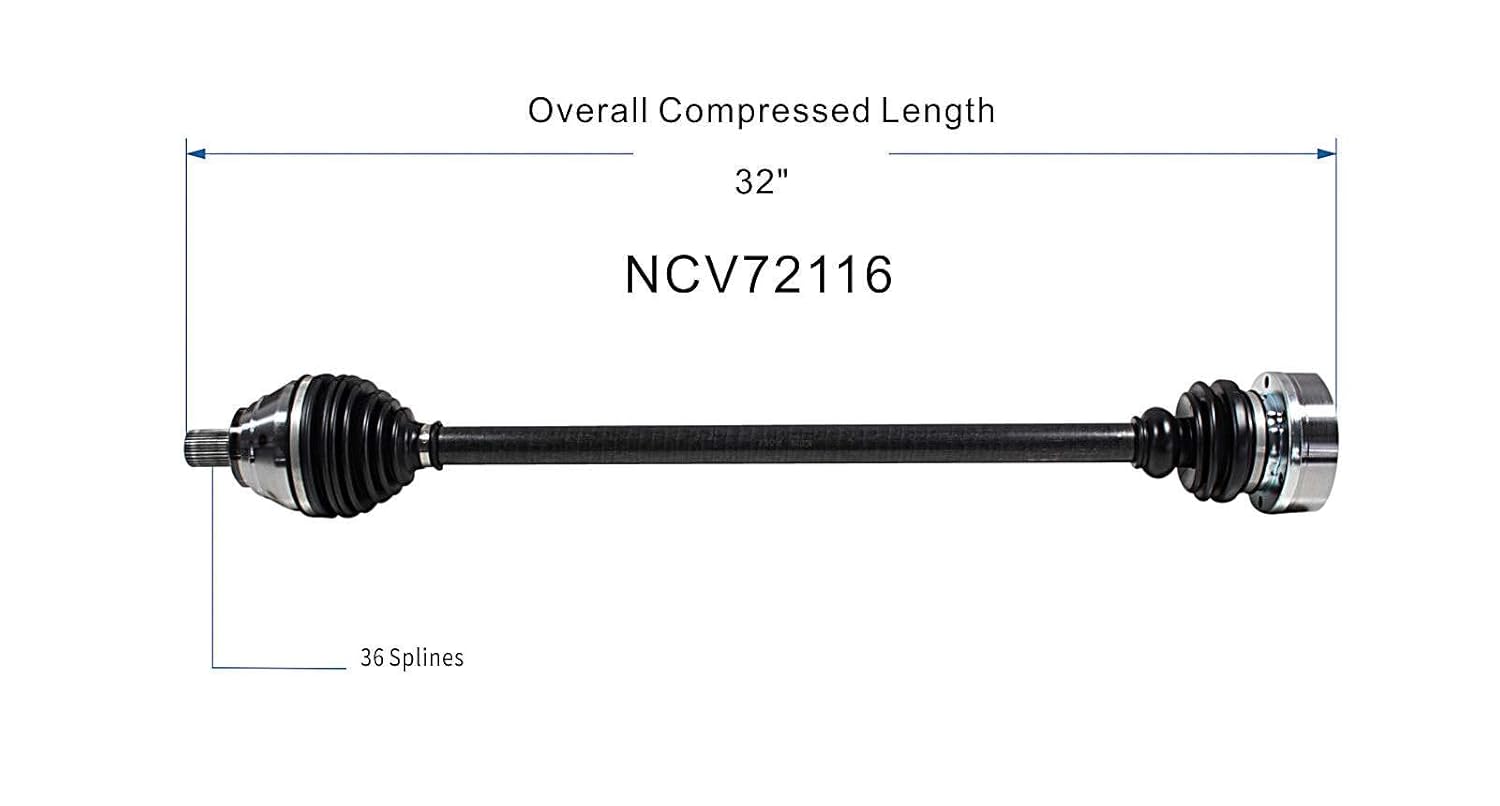 O GSP NCV72116 é projetado especificamente para o lado direito dianteiro (passageiro) e possui um comprimento comprimido de 32-1/16 polegadas, com um conjunto de 36 dentes na junta externa e uma junta interna que se fixa por parafusos. Este eixo é compatível com uma seleção de veículos Volkswagen, incluindo o Bora 2010, Golf 2010-2013, Jetta 2005-2017 e Rabbit 2006-2009. É essencial verificar os detalhes de compatibilidade antes da compra.