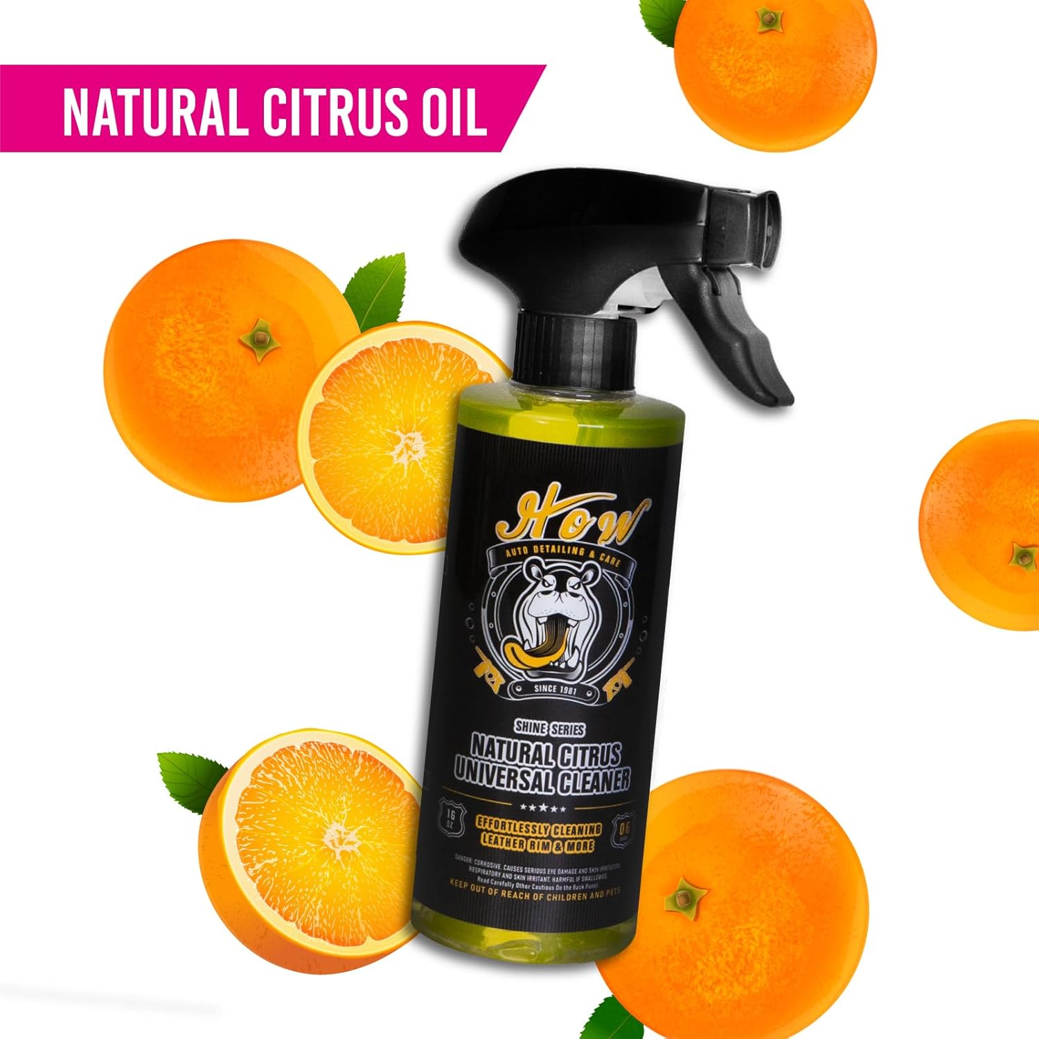 I love to spend time detailing my car when time and weather permits, and take pride in its appearance. I love a clean dashboard and instrument panel with a subtle sheen. The H.O.W SHINE SERIES Natural Universal Citrus Cleaner is a great product that helps me reach my interior detailing goals. First, the cleaner is one that can be used on just about anything in your car, from the dash to the seats, exterior, rims and even the engine! Given a product that cleans grease from your engine bay, you wouldn’t expect it to be gentle enough to use on leather seats, yet it works on those too. The cleaner is easy to spray, and simple to use with a soft cloth or sponge. Best of all, it doesn’t just clean, it smells amazing too, leaving my car with a nice, fresh citrusy scent after being wiped off. Naturally that doesn’t last too long though. I plan to use it to tackle some nasty bug guts that the expensive professional car wash misses once the weather warms up a bit. I’m very happy with this cleaner!